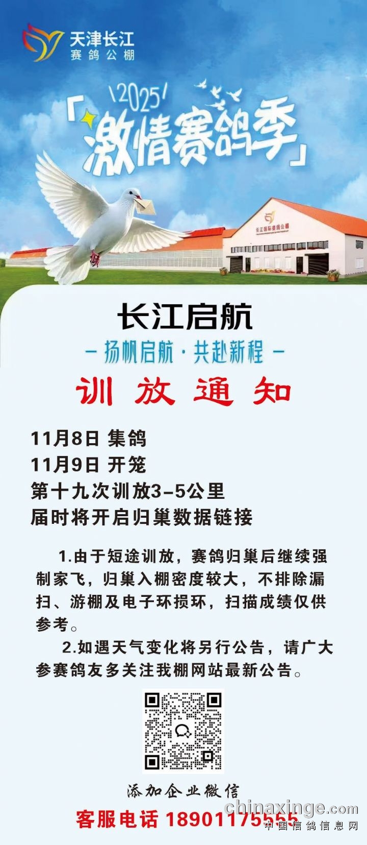 天津长江赛鸽公棚第十九次训放3-5公里公告