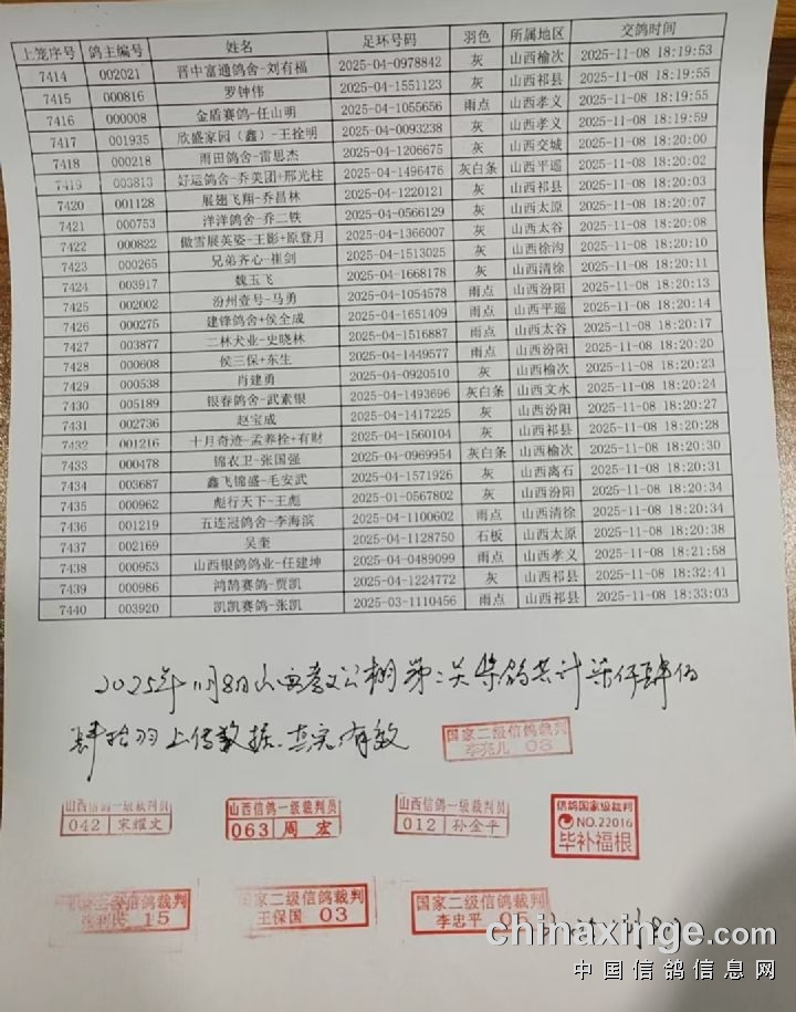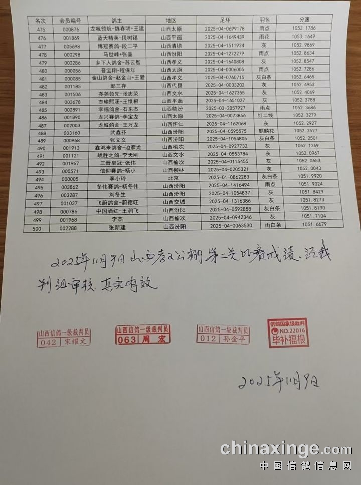 • 孝义弘辉:双关鸽王及三关鸽王获奖明细(两日内无异议,自动生效) (2025-11-18 17:09:55)
