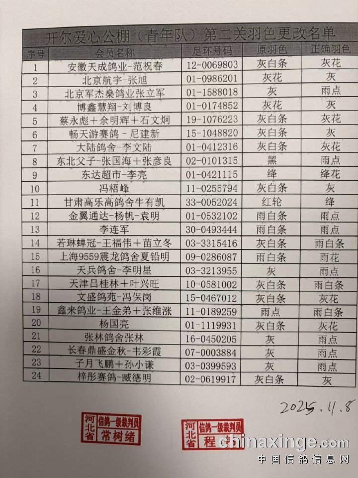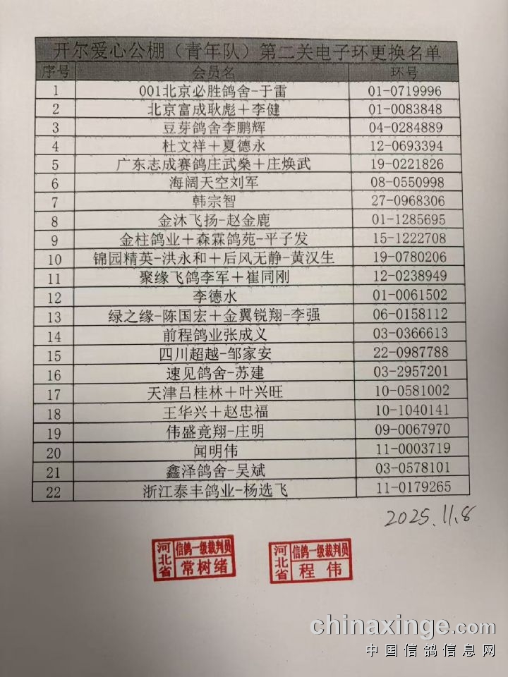 开尔爱心公棚(青年队)第二关更换电子环与修改羽色名单
