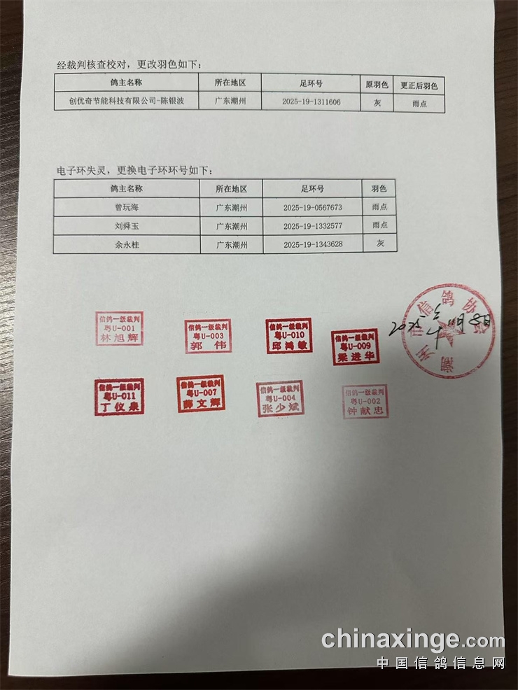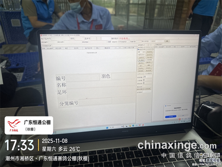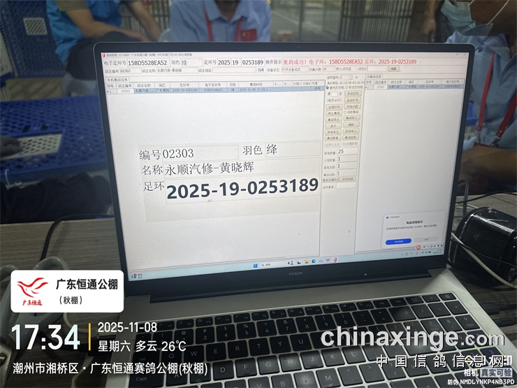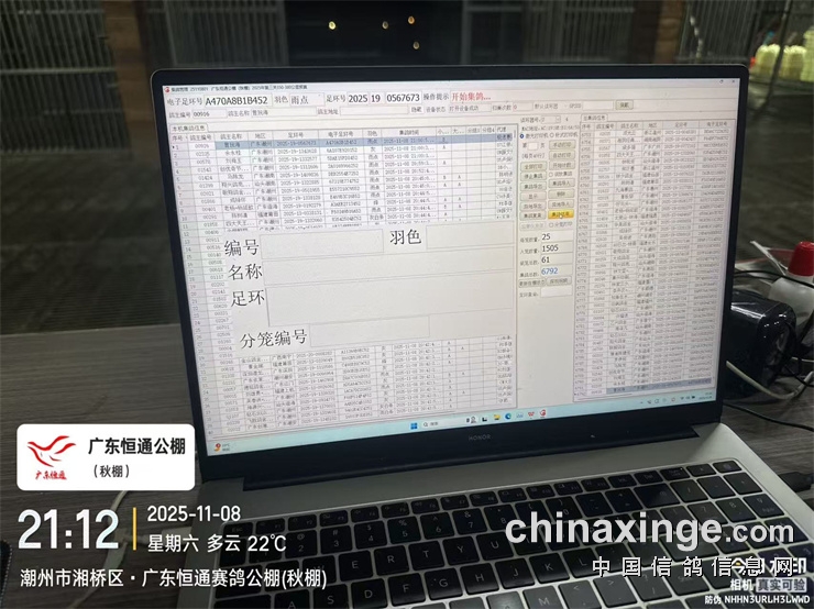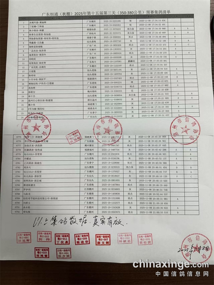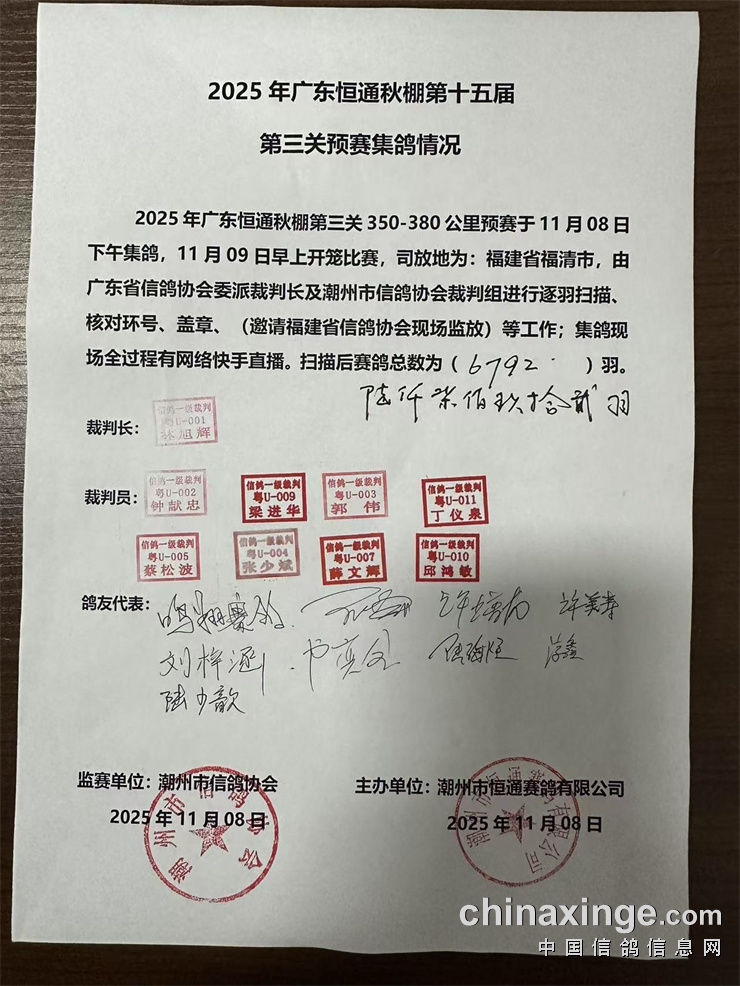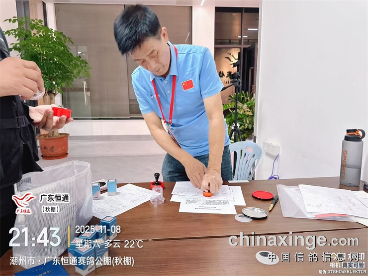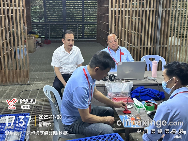 2025年广东恒通秋棚(第十五届)第三关预赛集鸽由潮州市裁判组进行逐羽扫描、盖章、上笼等集鸽工作,共集鸽 6792羽;