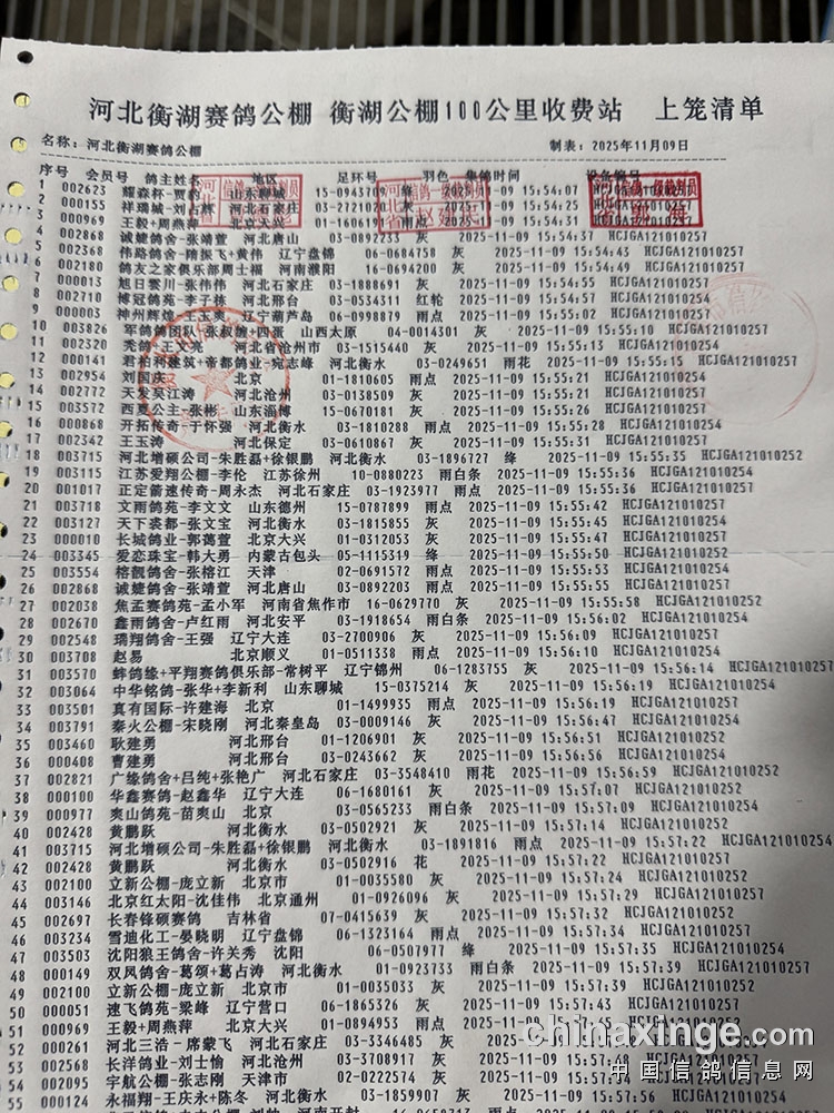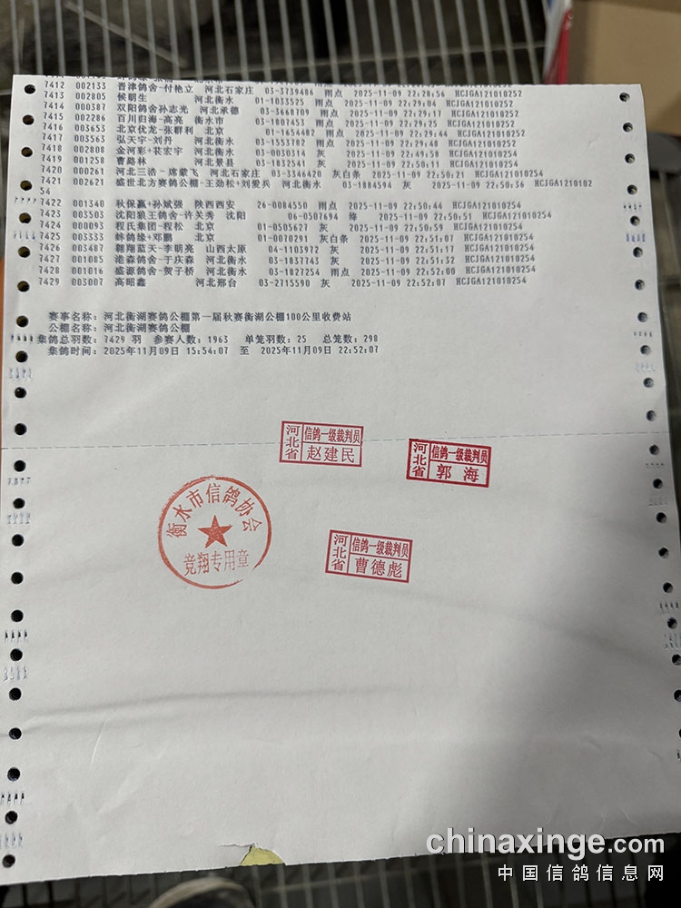 河北衡湖赛鸽公棚小团体获奖名单(因未报满,剩余奖金由有资格决赛上笼鸽均分,获奖鸽除外)