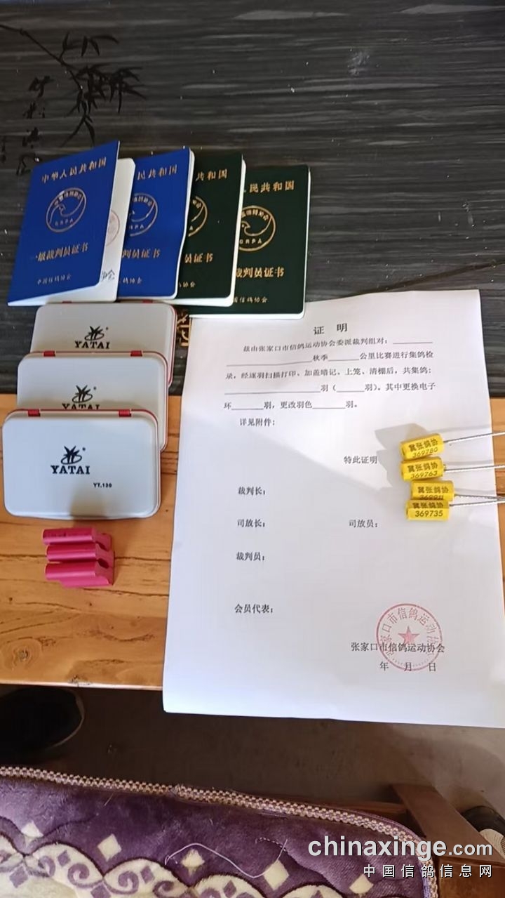 张家口庆翔公棚加站赛第二关当日归巢证明