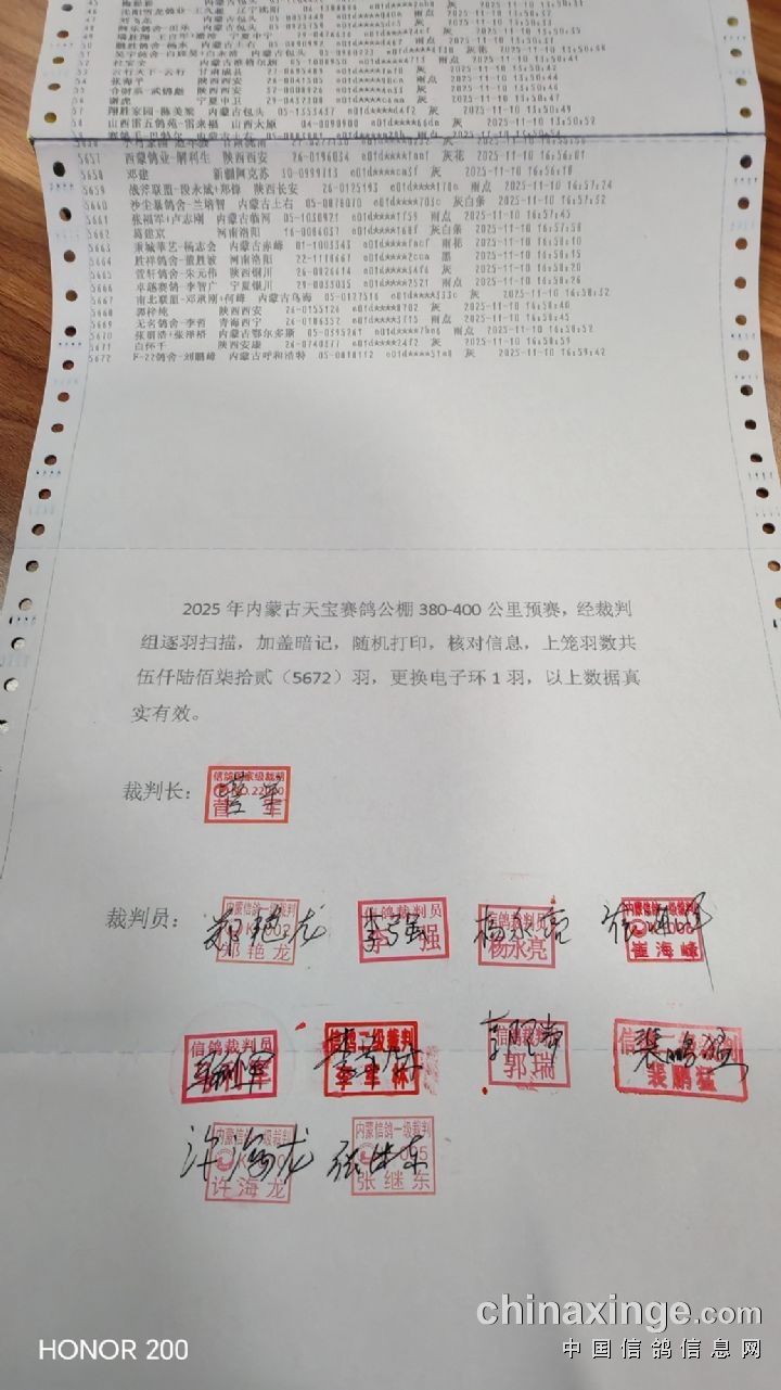 内蒙古天宝赛鸽公棚500-550公里加站赛前十名验鸽图集