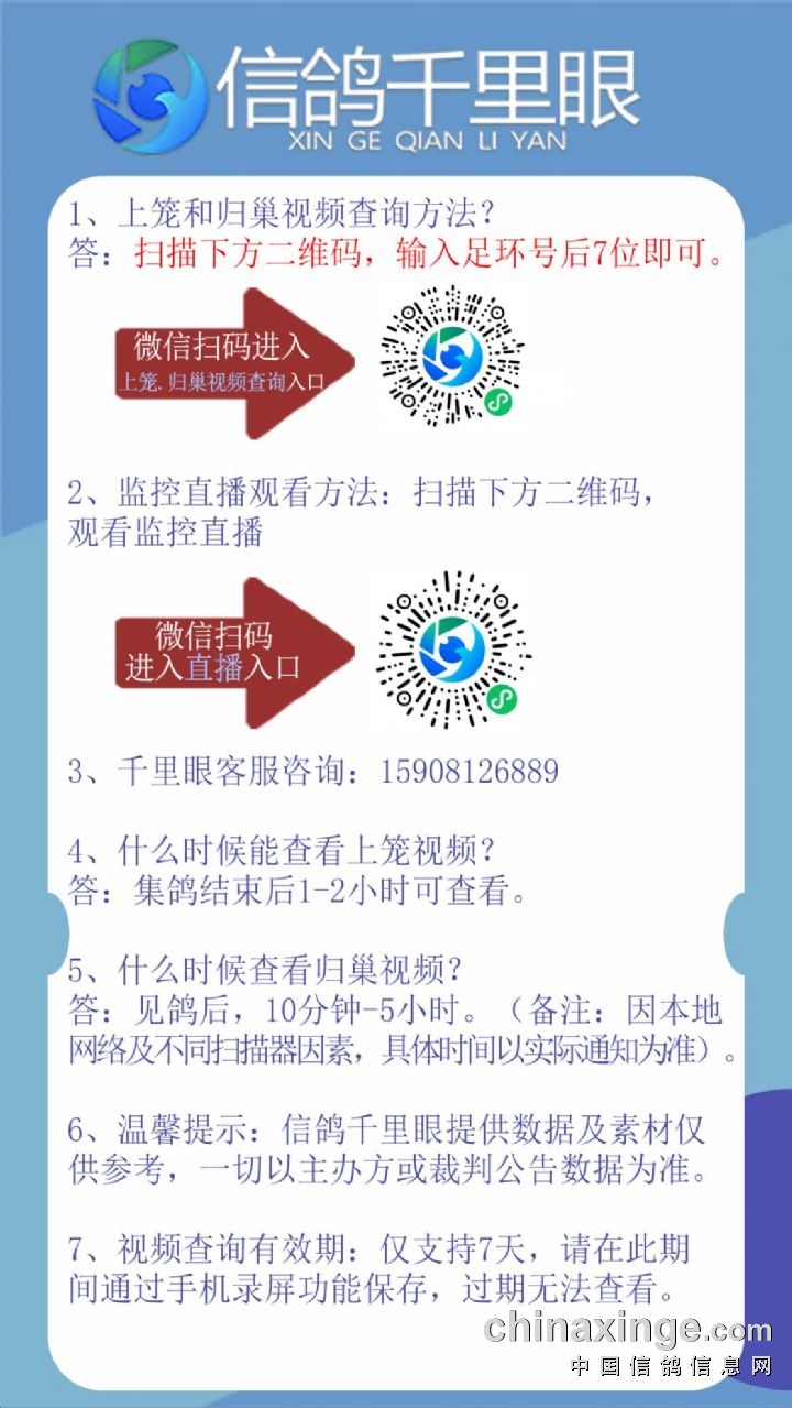 信鸽千里眼视频监控系统(简称信鸽千里眼),是一款服务信鸽赛事的可视化系统,致力于以信鸽赛事透明化服务为基础,让每一羽赛鸽得到应有的尊重,为信鸽赛事公开透明化赋能。信鸽千里眼硬件采用央企海康威视产品线标准生产,云平台基于央企萤石云开放平台开发,二者合一将音视频的直播、录制、存储、分析等能力在信鸽领域进行投入使用。
