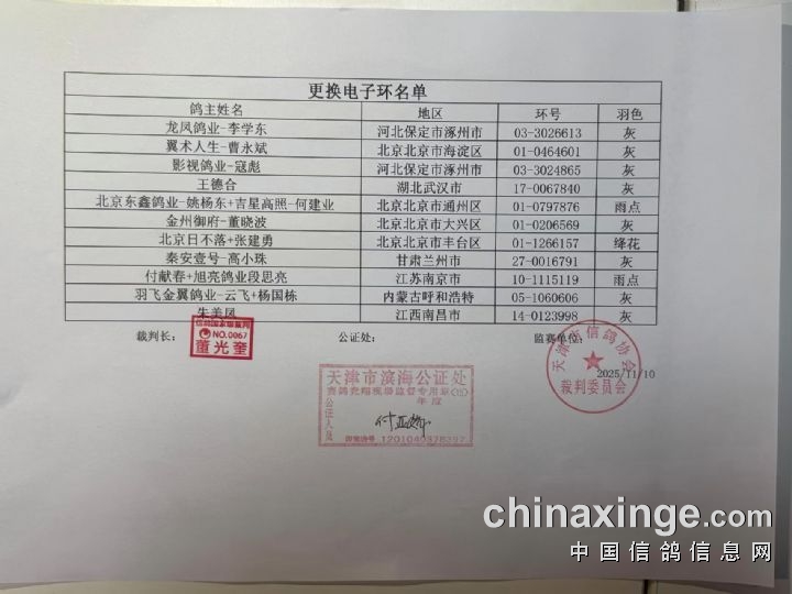 天津长江赛鸽公棚第一关精英赛晋级名单
