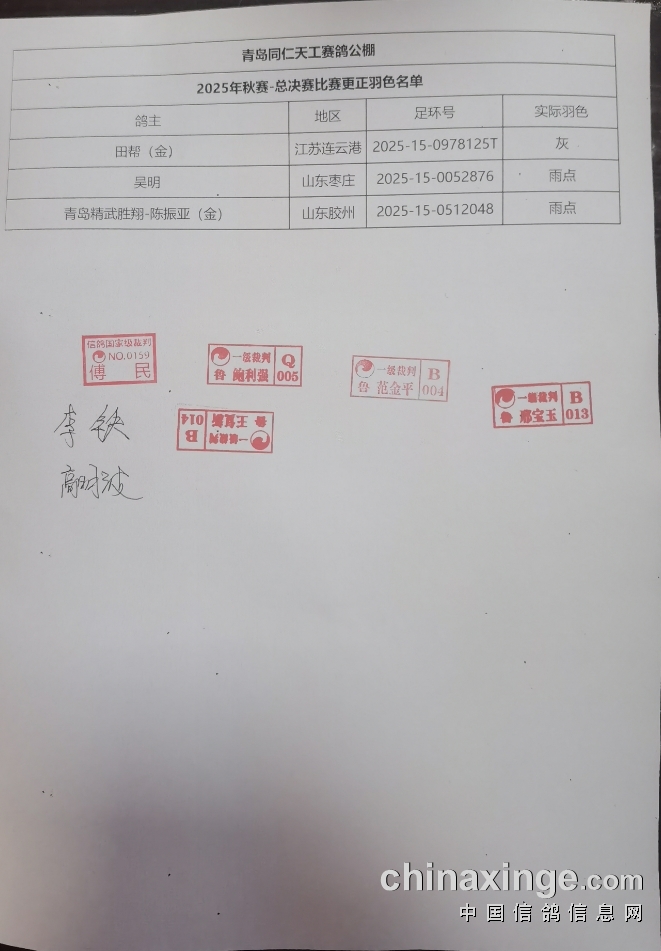青岛同仁天工 近期迟归鸽名单(第三批)