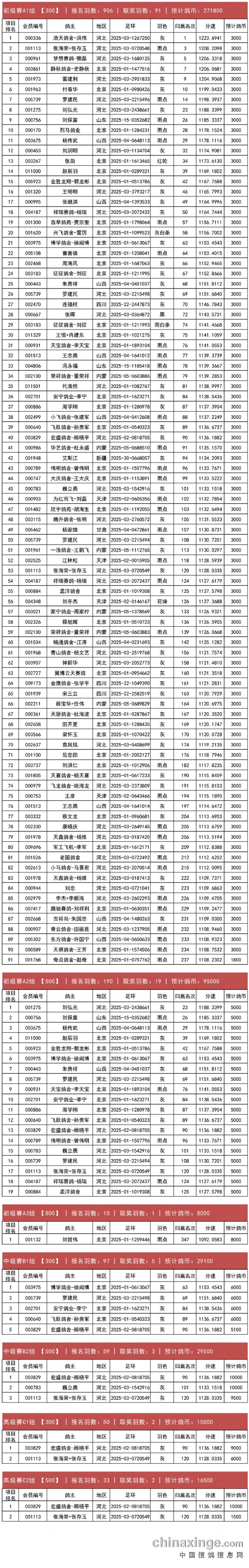 晟达赛鸽公棚——决赛1-1000名获奖鸽名单