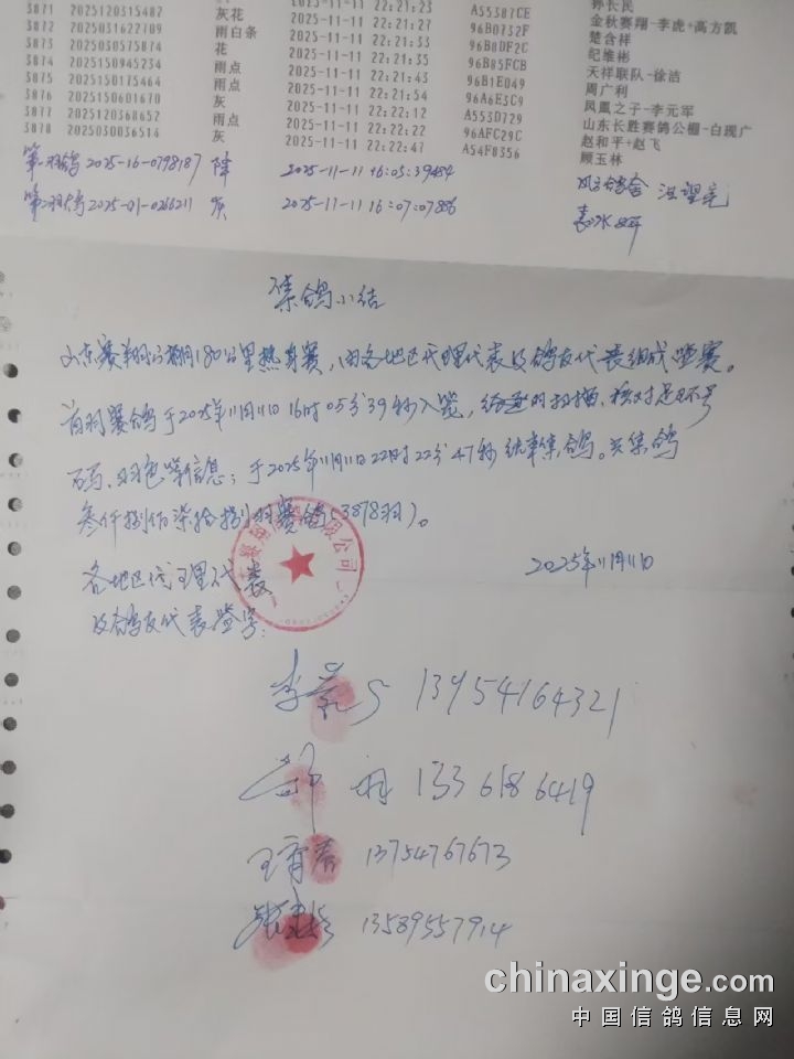 山东赛翔公棚(秋棚)2025年决赛集鸽清单(按会员)