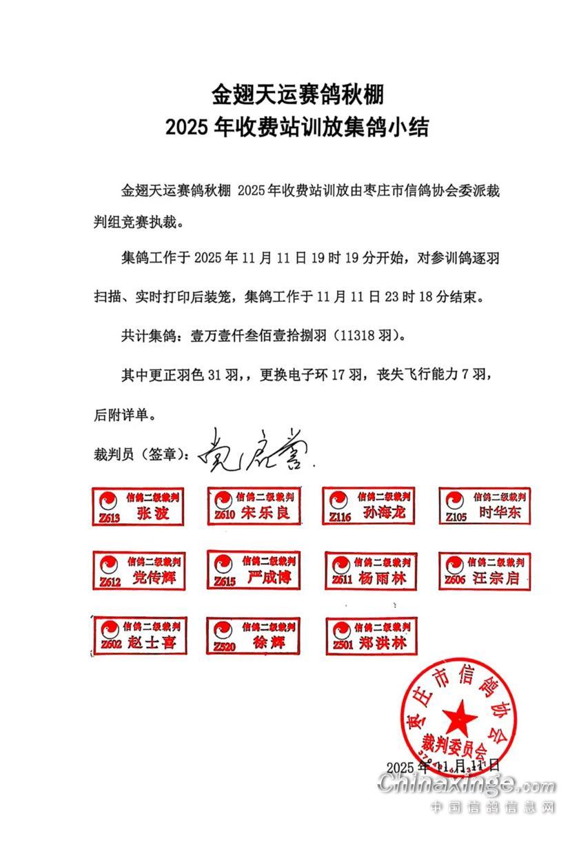 金翅天运(小秋棚)490-530公里第三关决赛开笼公告及扫描链接