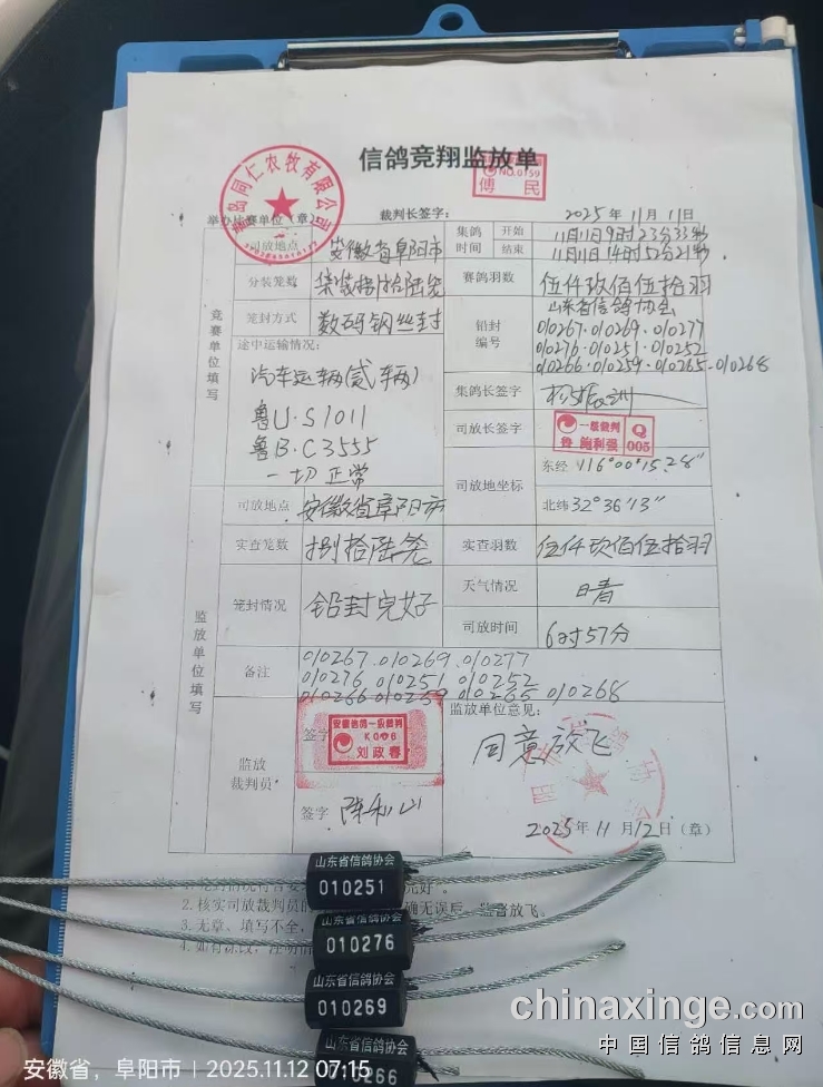 安徽阜阳信鸽协会 刘政春 13505583333