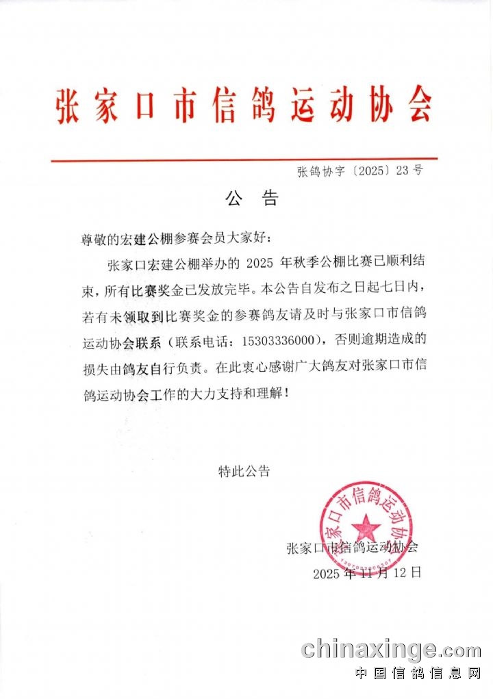 河北宏建赛鸽公棚 2025年第十一届秋季大奖赛规程(简版)