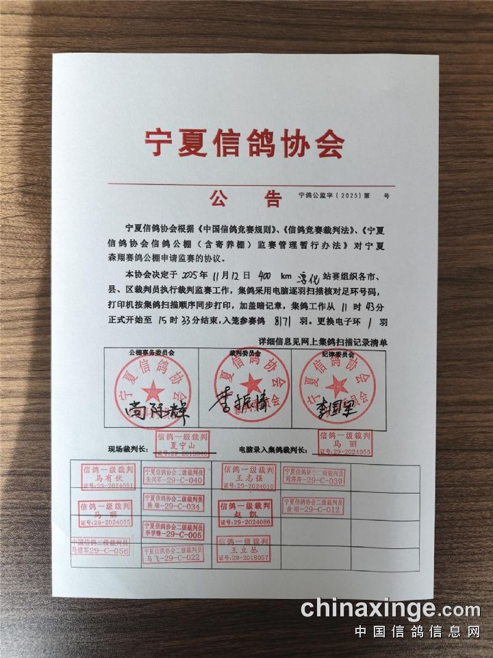 • 宁夏信鸽协会公告 (2025-11-27 14:21:19)