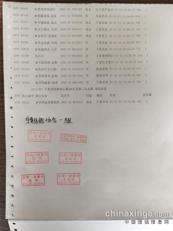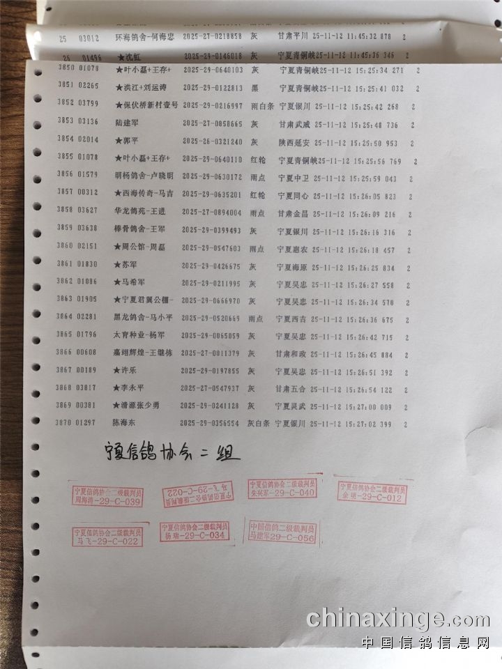 • 宁夏森翔赛鸽公棚566公里加站赛集鸽名单(按顺序) (2025-11-27 14:17:48)