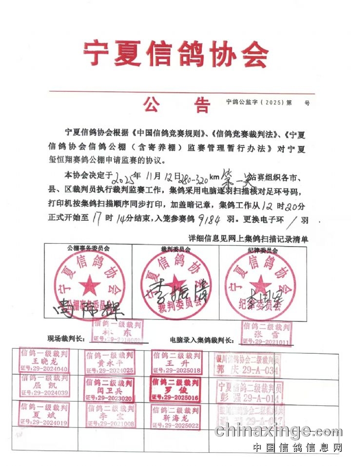 • 宁夏信鸽协会公告 (2025-11-20 17:46:20)