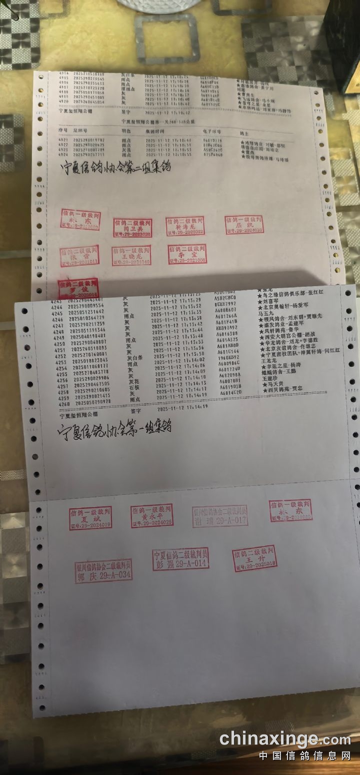 2026宁夏玺恒翔公棚收鸽明细(不断更新中...)