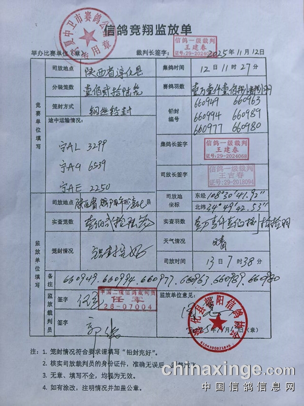 • 宁夏中卫赛鸽公棚双关鸽王、三关鸽王成绩 (2025-11-20 17:05:29)