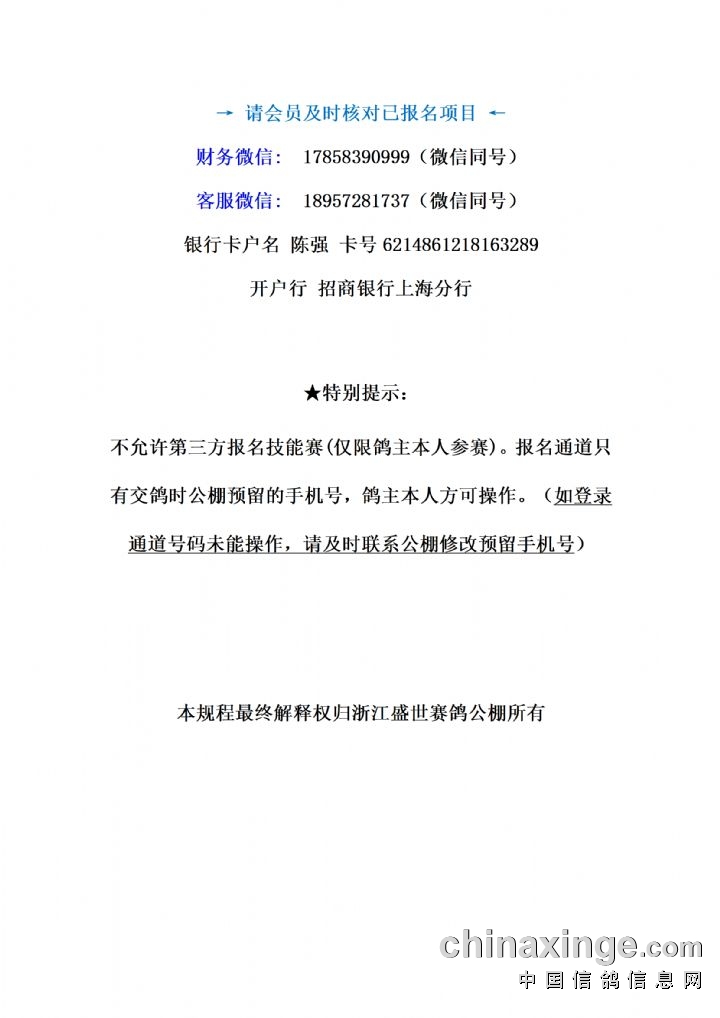 • 浙江盛世赛鸽公棚第一关奖金及技能赛奖金以全部发放完毕 (2025-11-26 15:19:59)