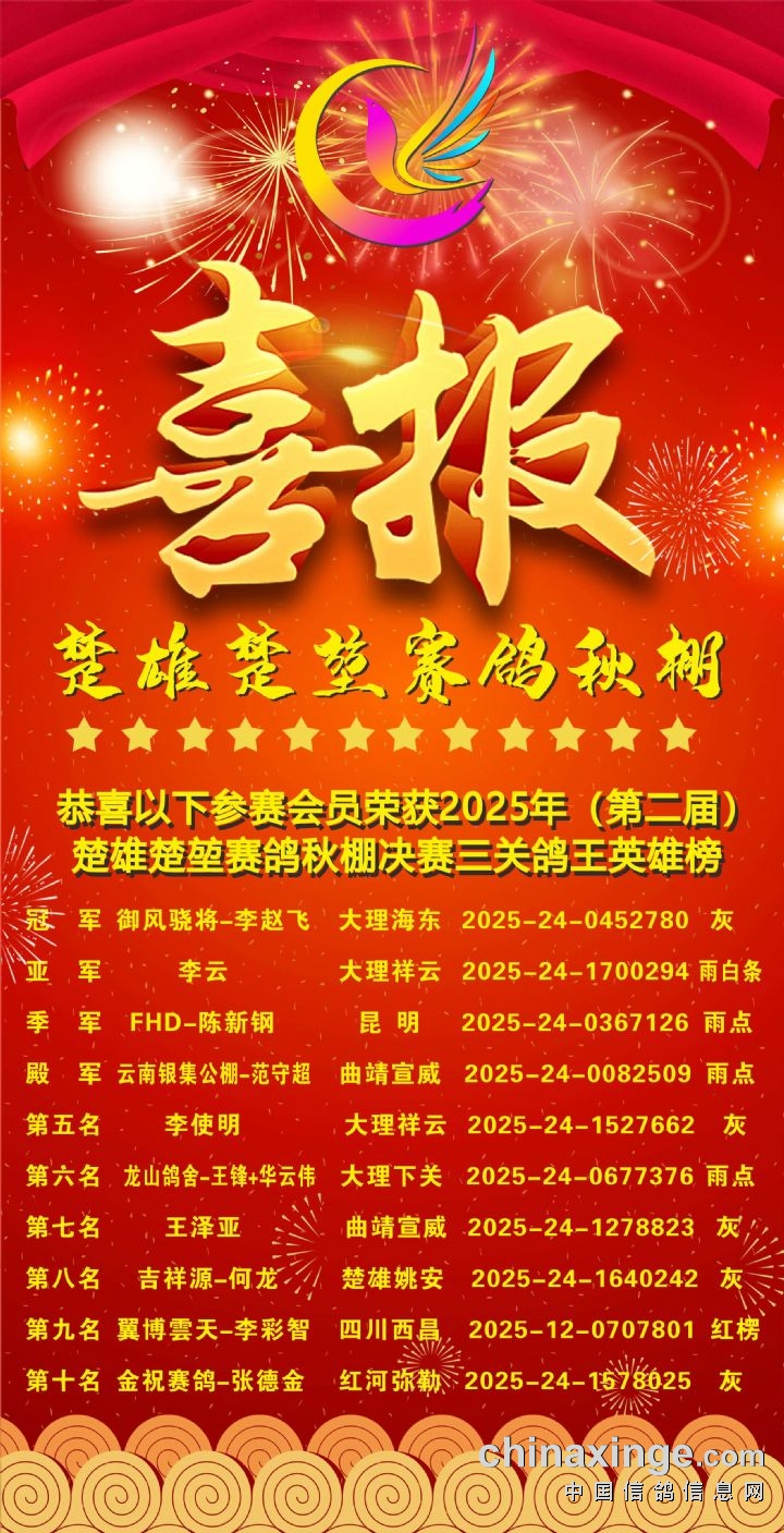 • 2025年楚堃赛鸽秋棚(第二届)奖金发放结束通知 (2025-11-16 12:10:39)