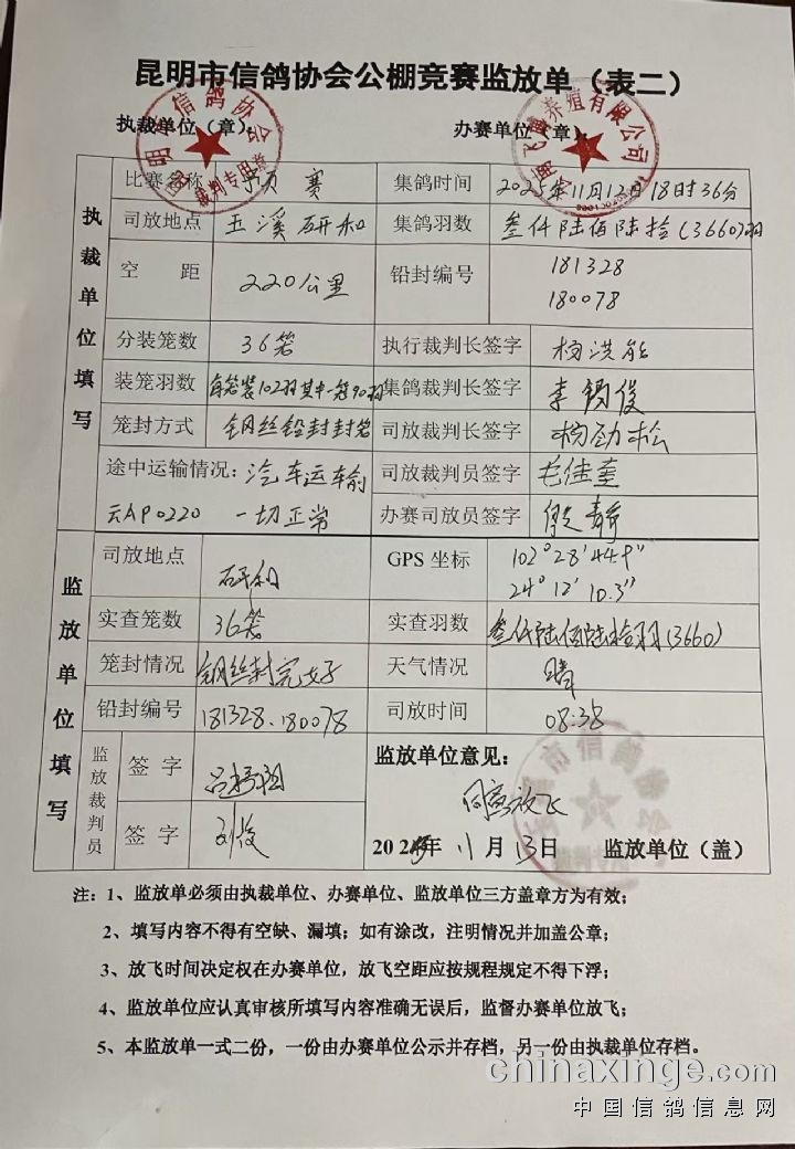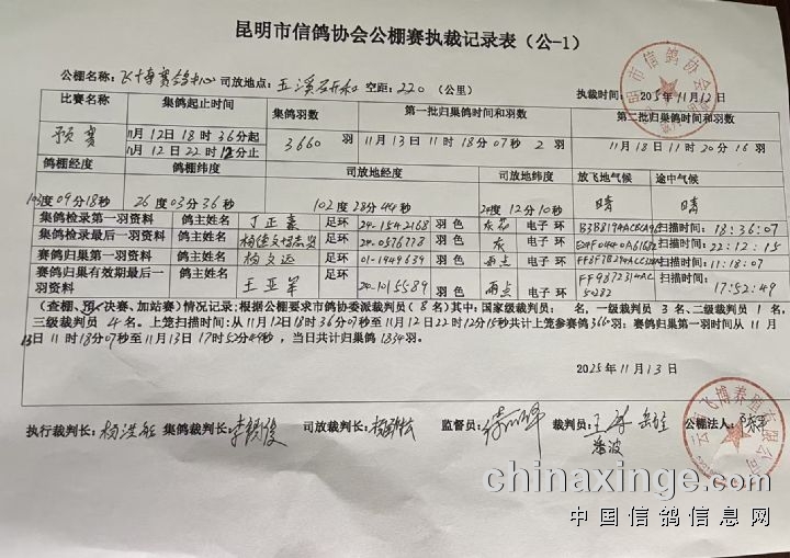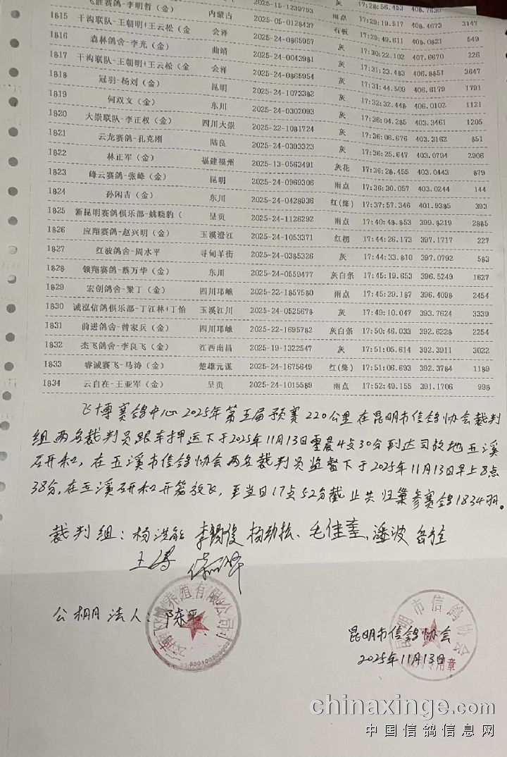 2025年飞博赛鸽中心:(220公里预赛)执裁文件