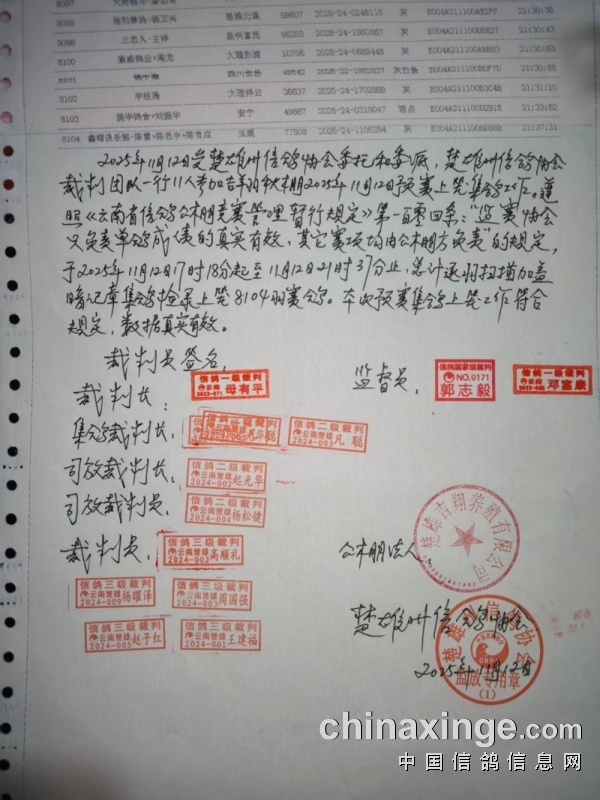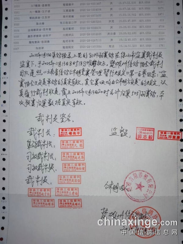 楚雄吉翔秋棚300公里短距离竞翔赛核对公告
