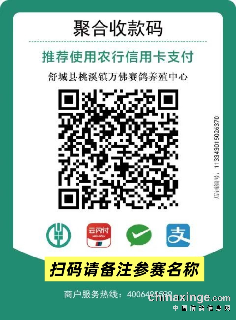 现场探视鸽友务必在11月16日中午12:00点前完成交费,请鸽友在缴费系统中提交订单,汇款后请把汇款凭证上传至【D-P-S】或微信客服,审核后生成交费二维码,公棚收费窗口出示电子参赛卡,扫码取票,无需排队等候。