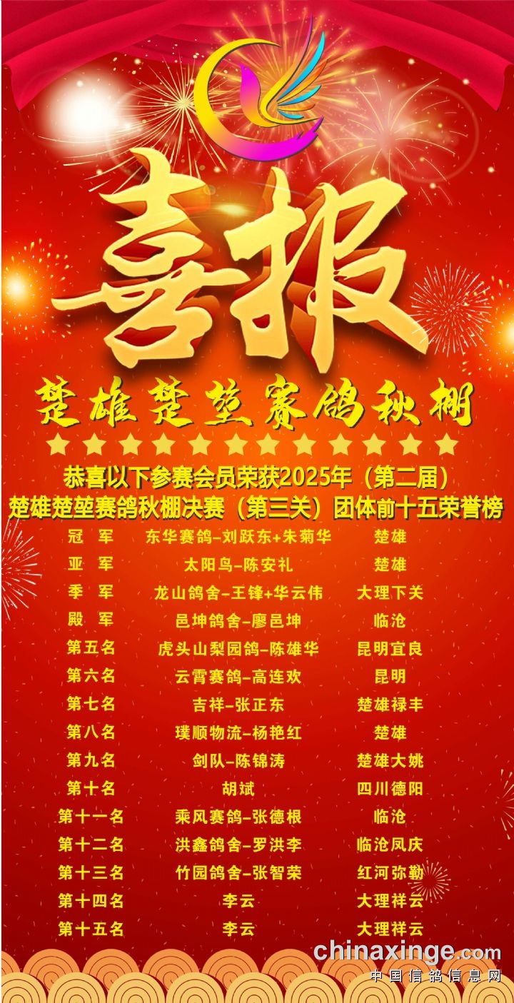 • 楚堃赛鸽秋棚2025年第二届决赛获奖鸽照片 (2025-11-16 11:46:21)