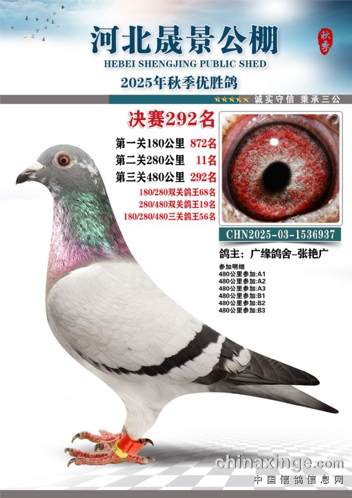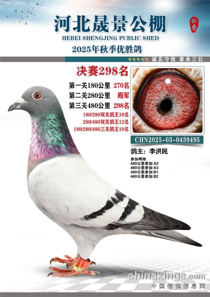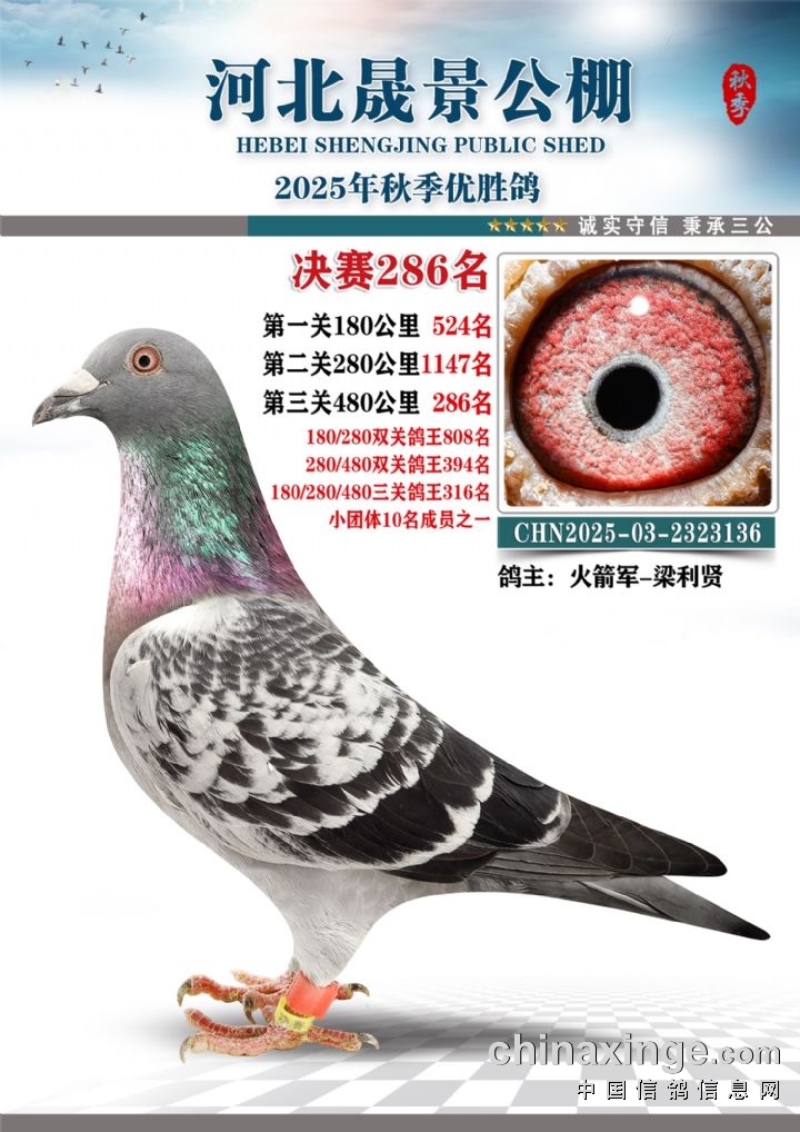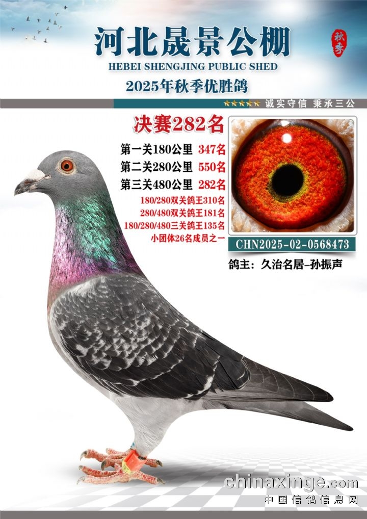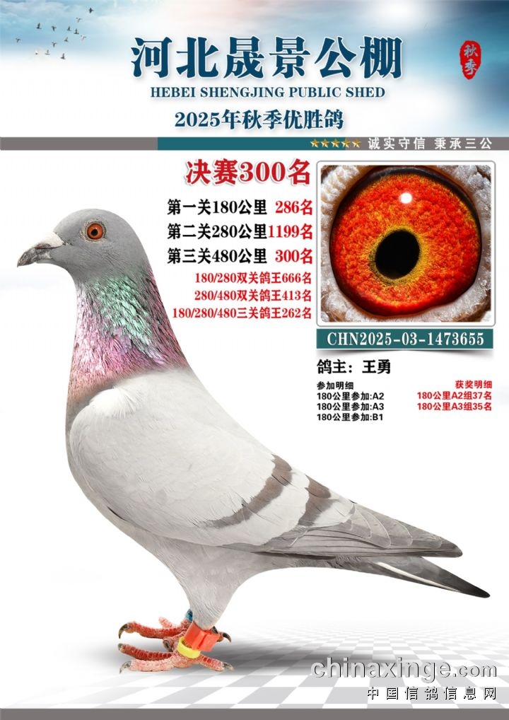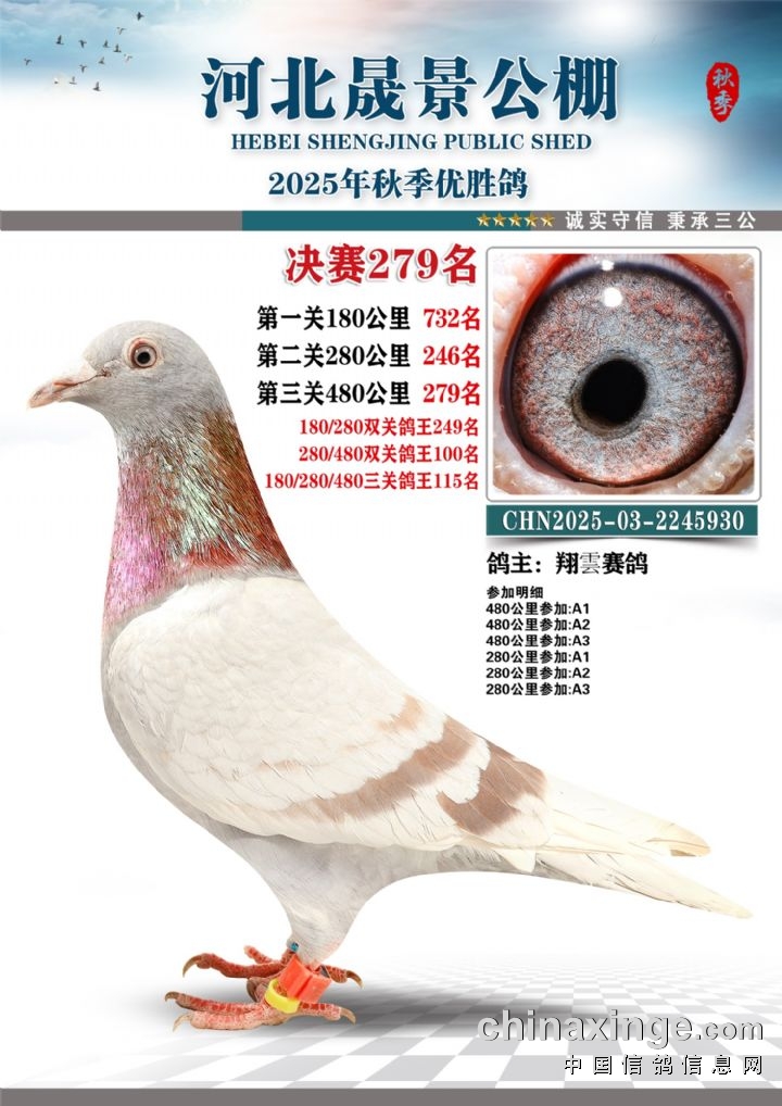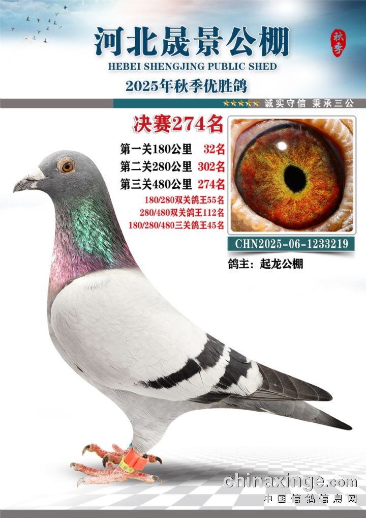 河北晟景公棚25年秋赛480公里决赛271-300名获奖鸽鉴赏图