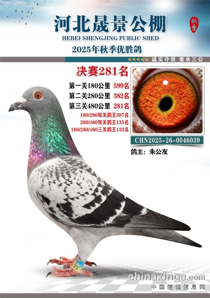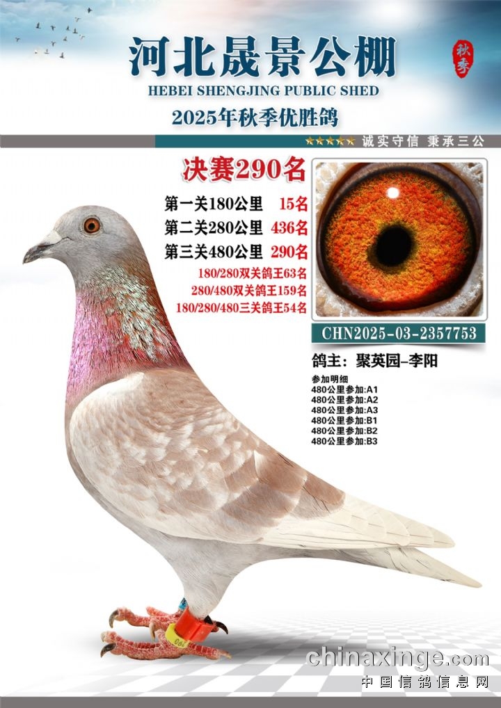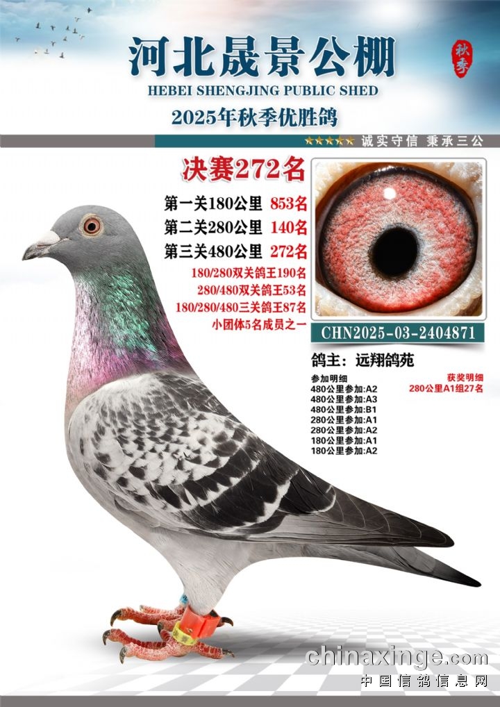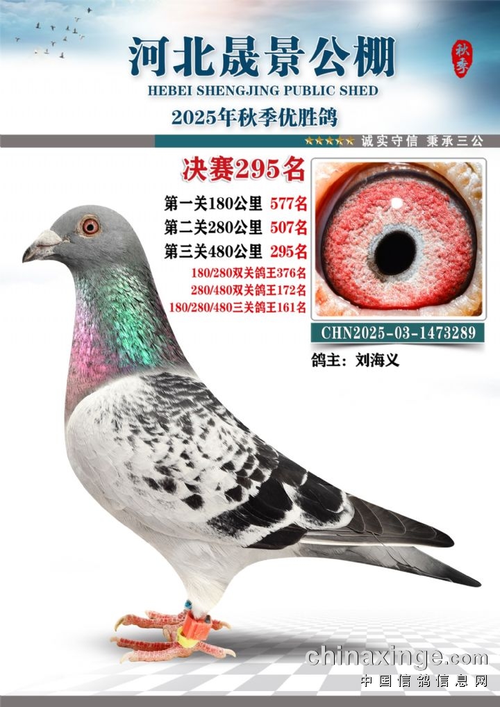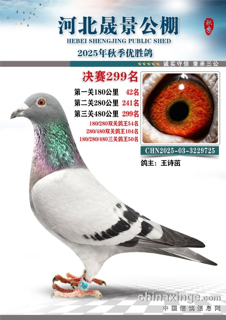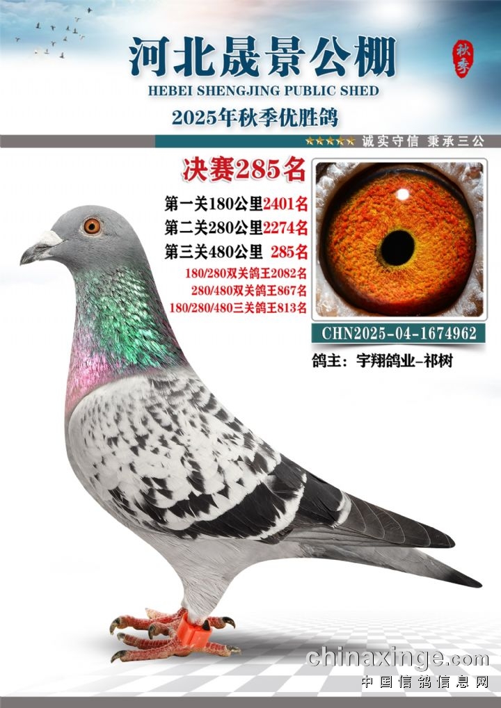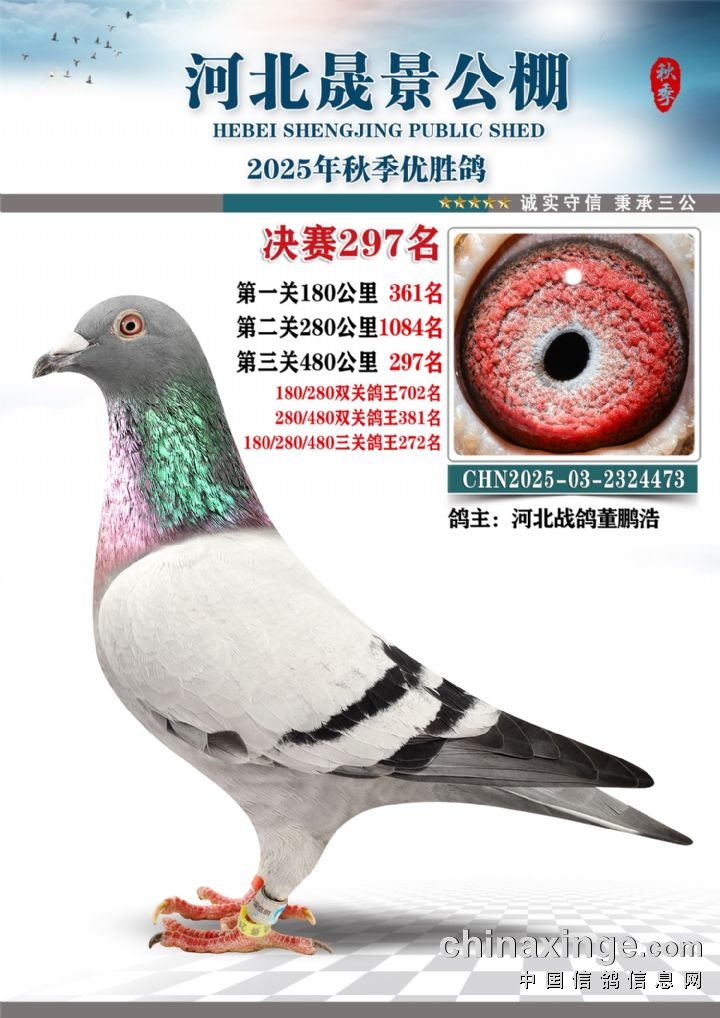 河北晟景公棚25年秋赛480公里决赛271-300名获奖鸽鉴赏图