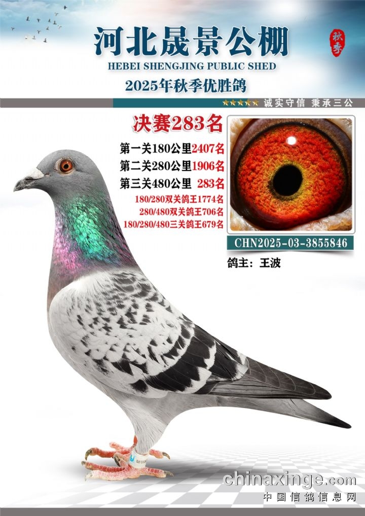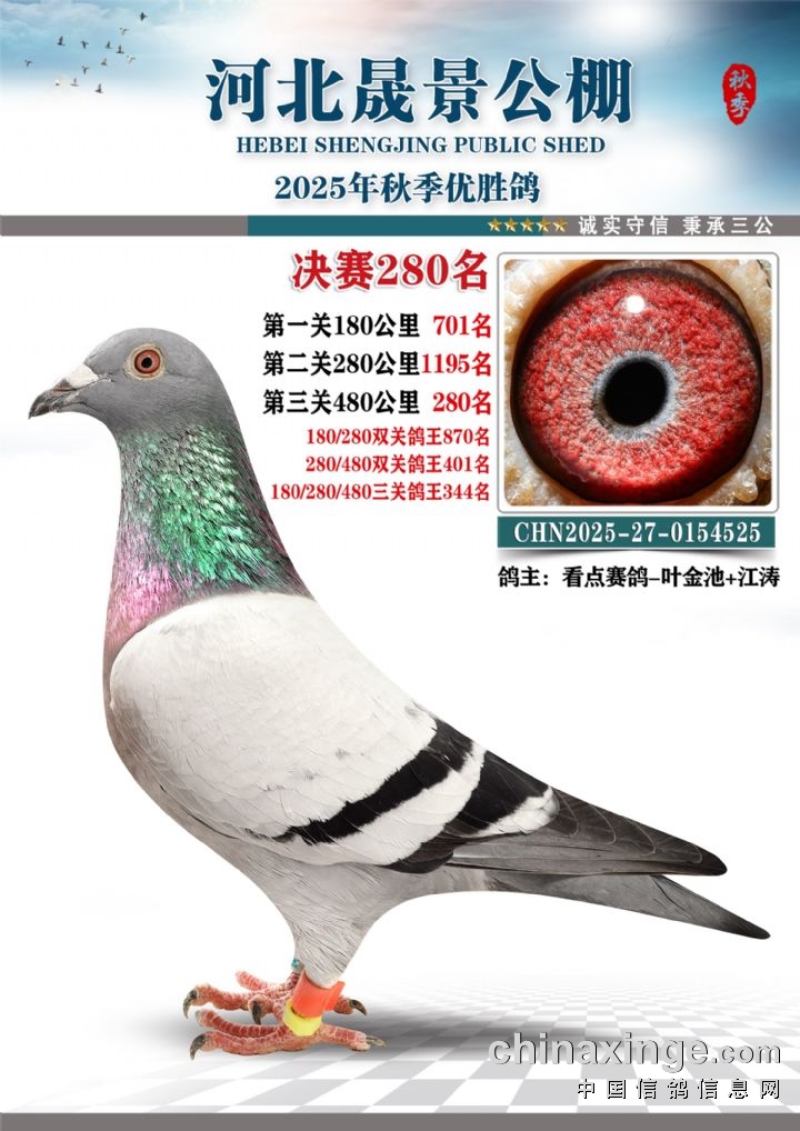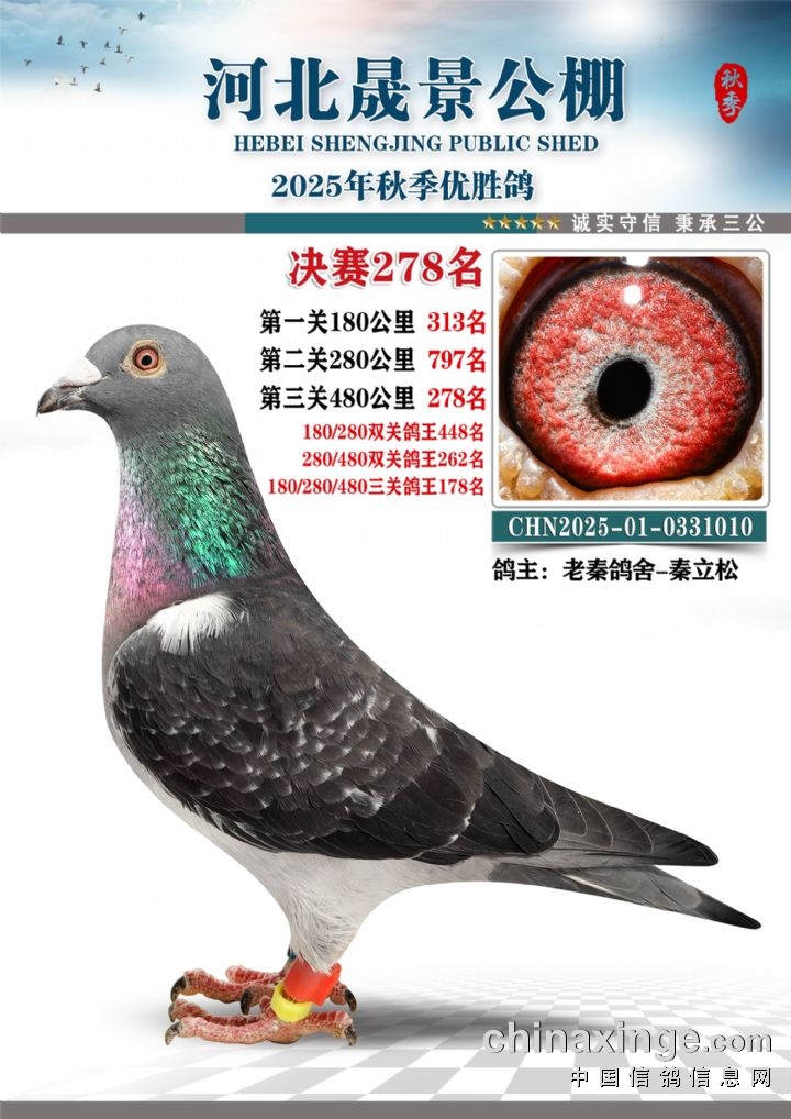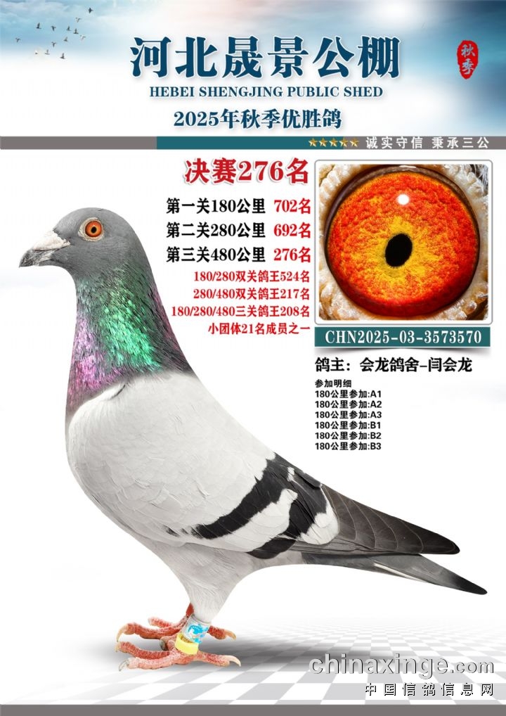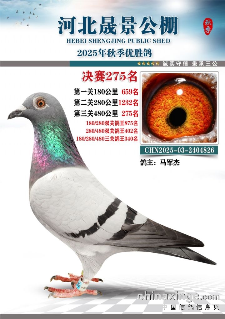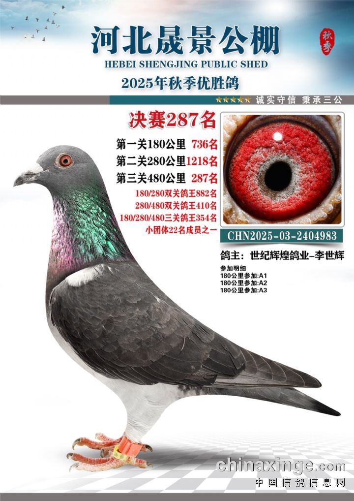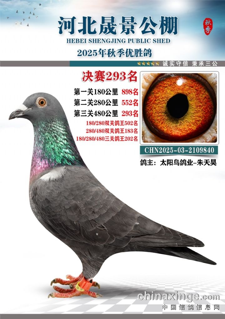 河北晟景公棚25年秋赛480公里决赛271-300名获奖鸽鉴赏图