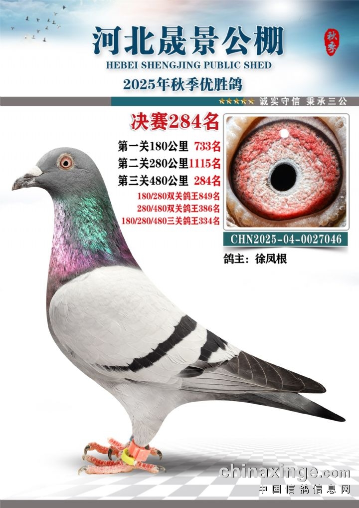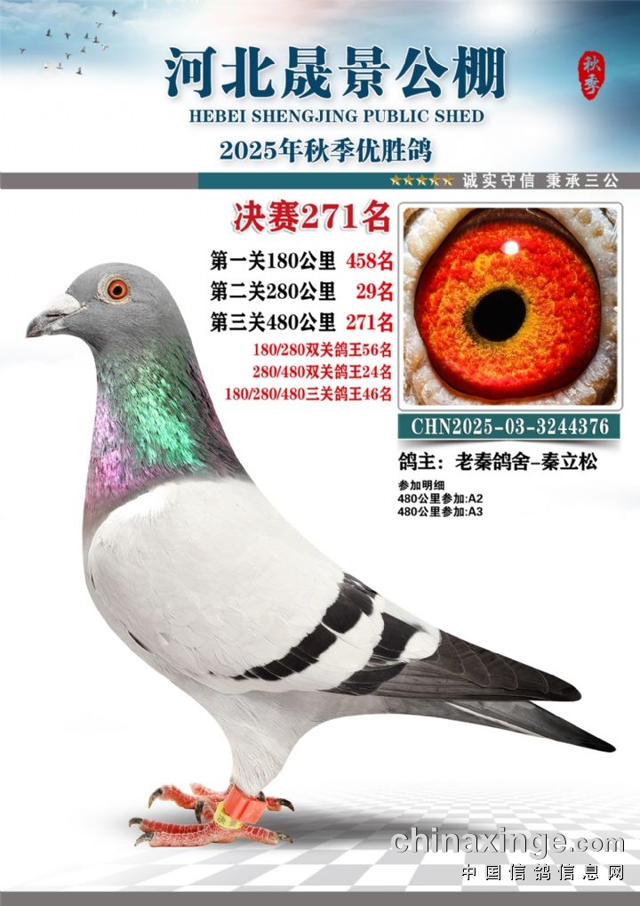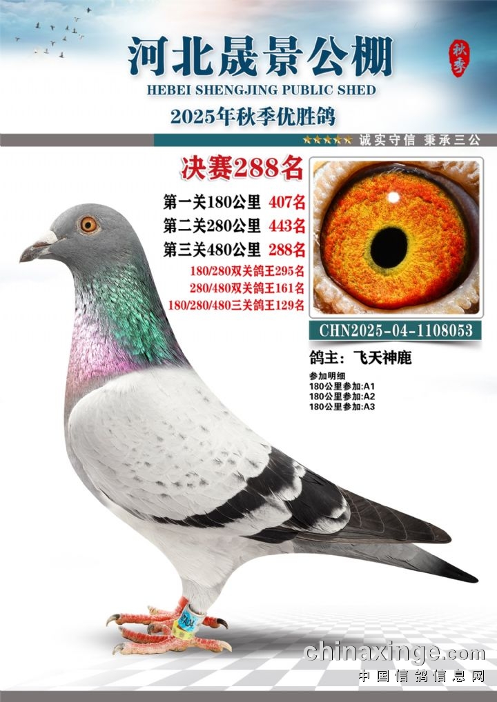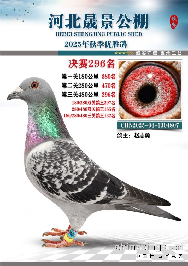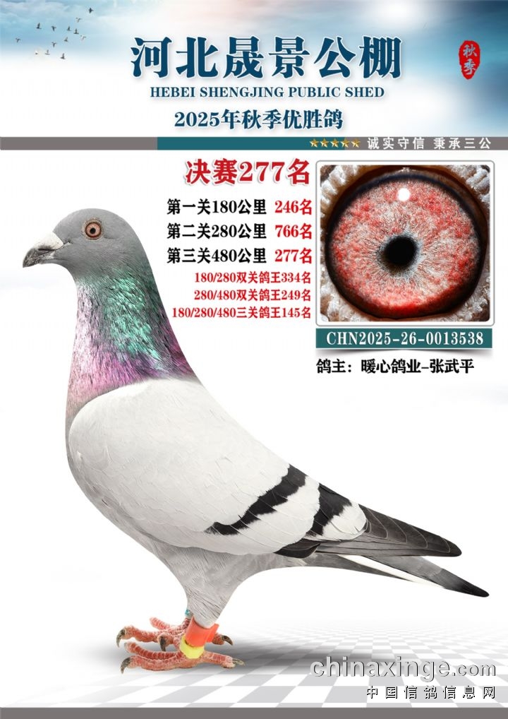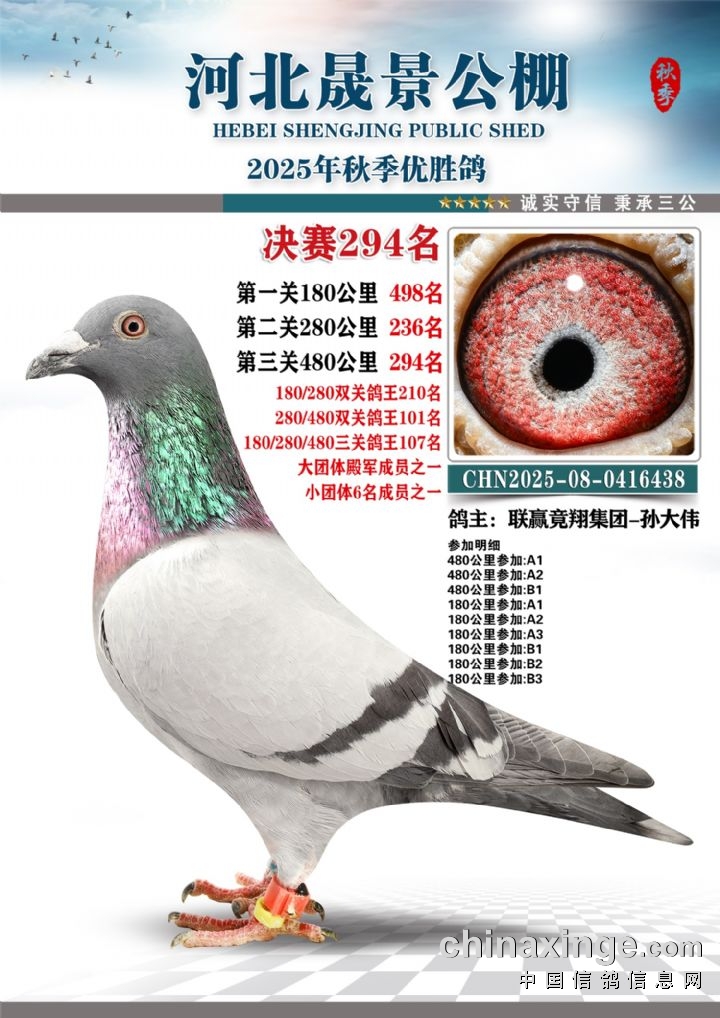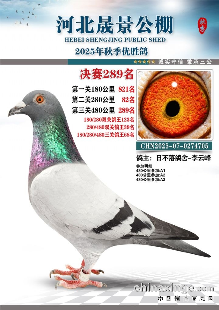 河北晟景公棚25年秋赛480公里决赛271-300名获奖鸽鉴赏图