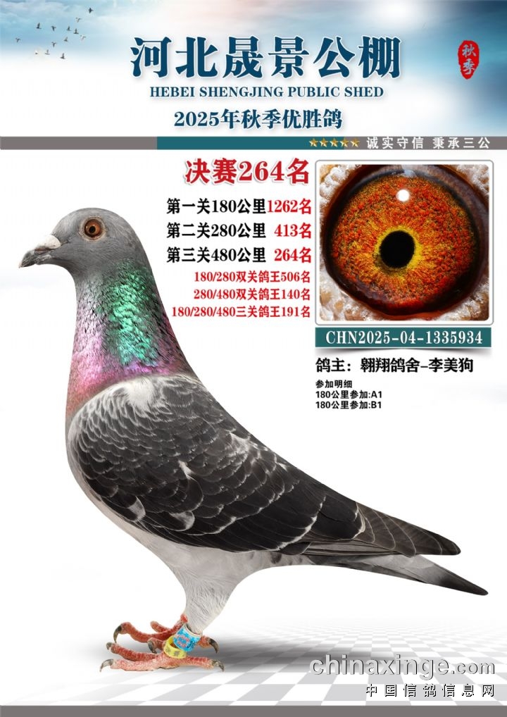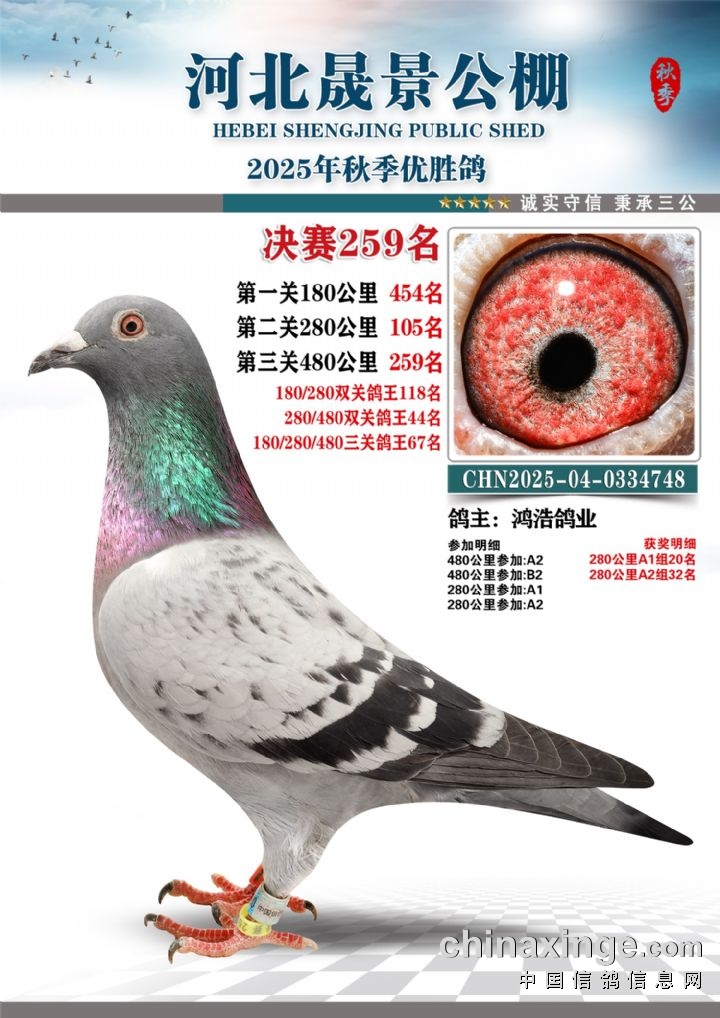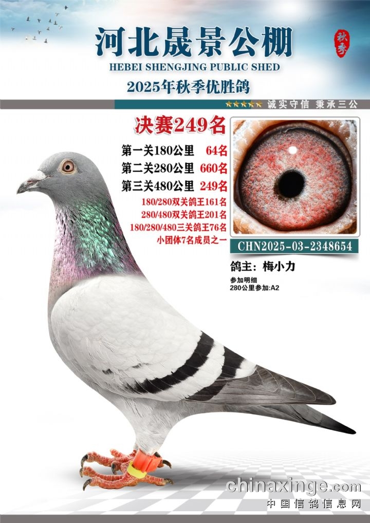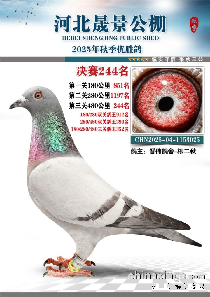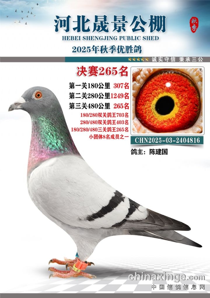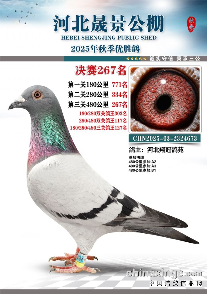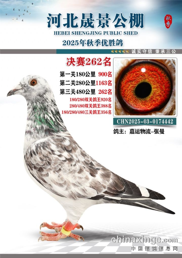 河北晟景公棚25年秋赛480公里决赛241-270名获奖鸽鉴赏图