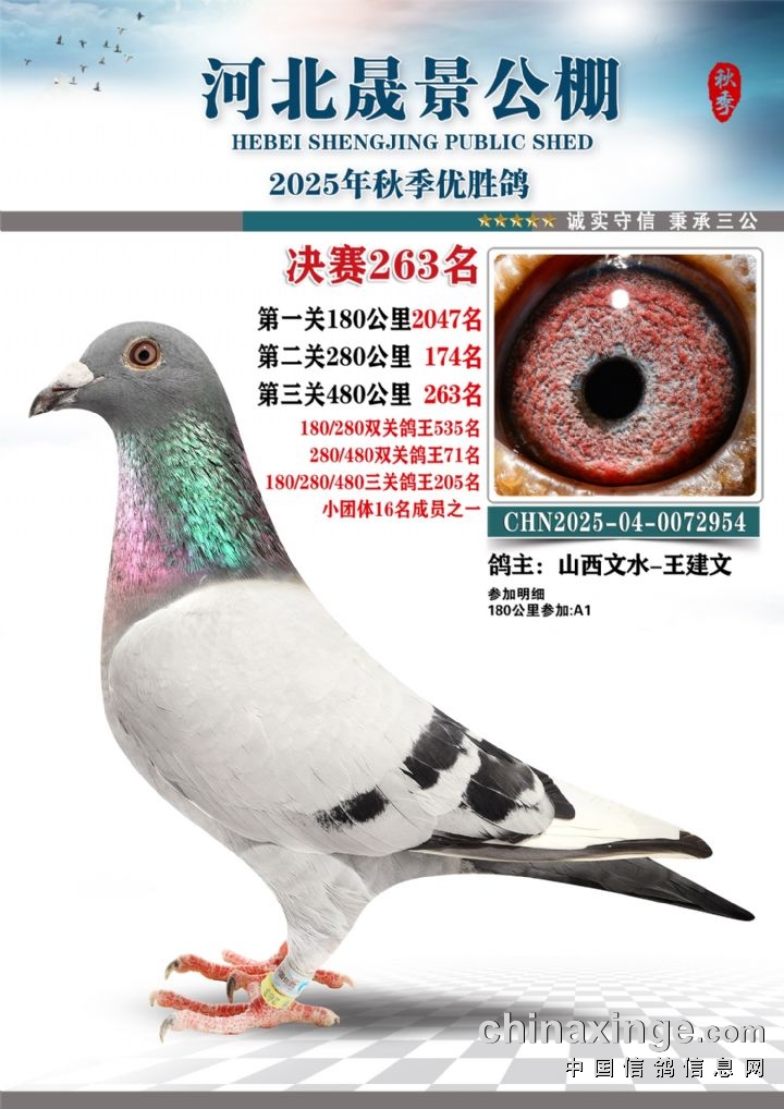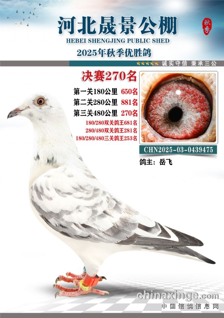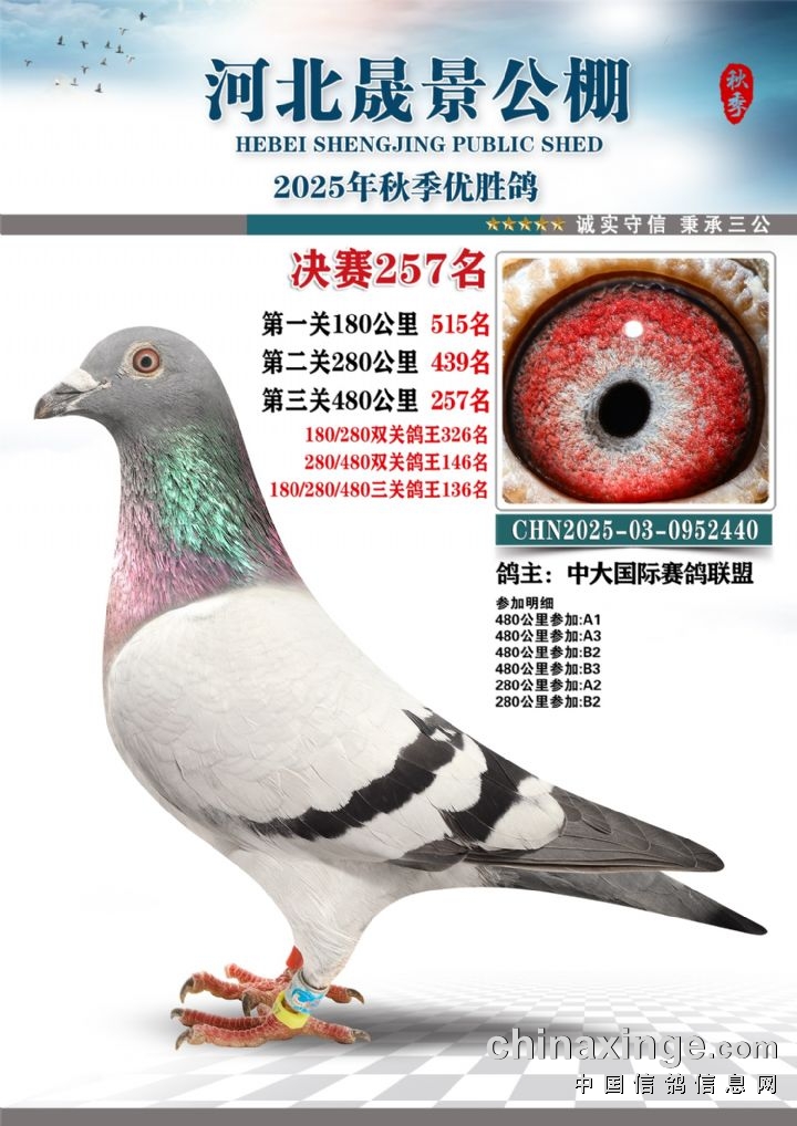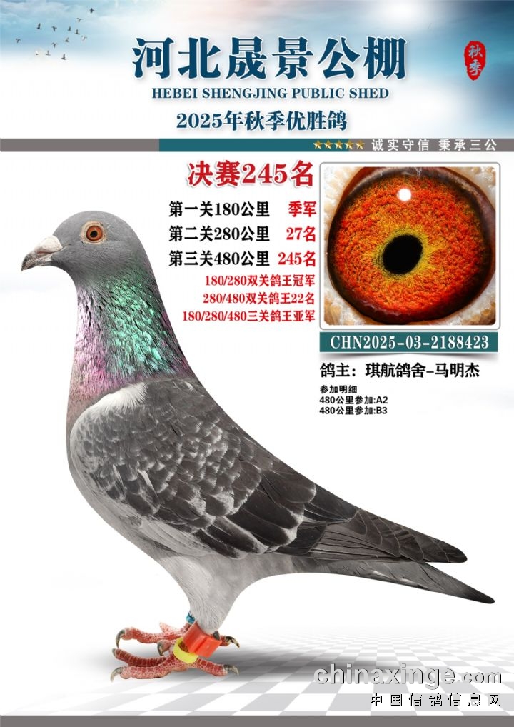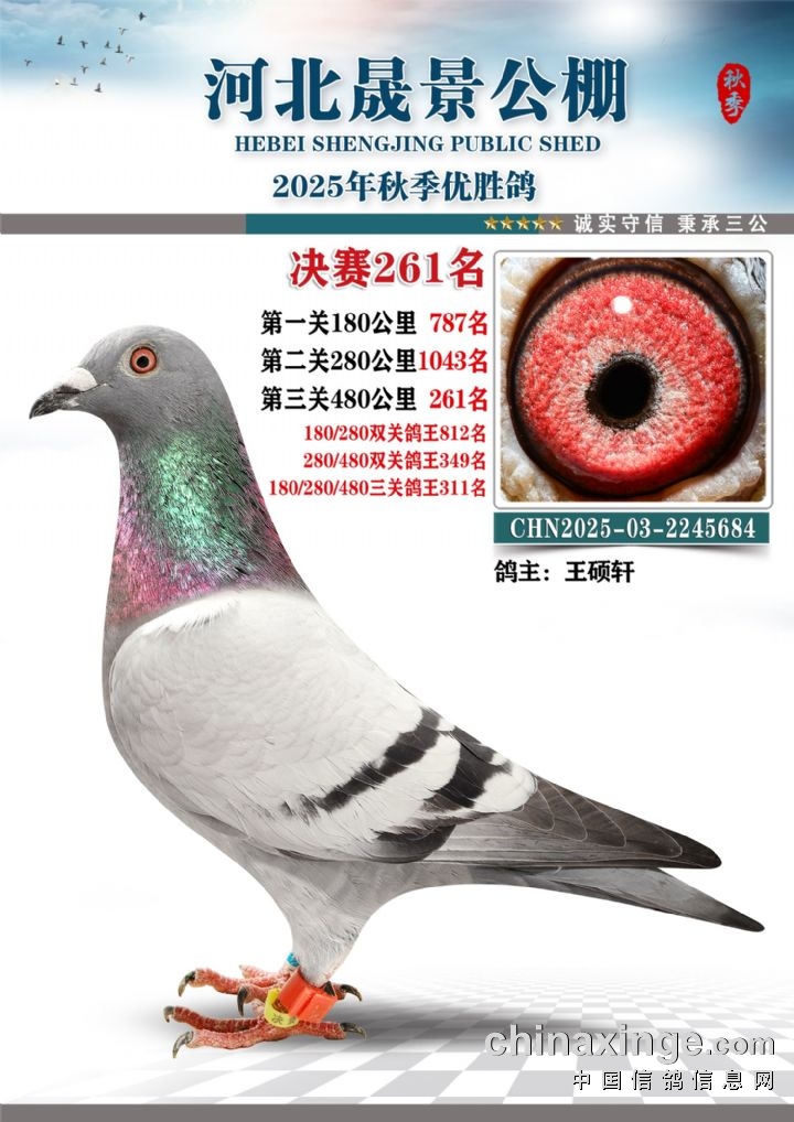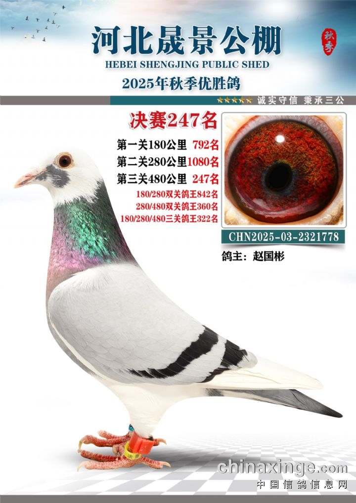 河北晟景公棚25年秋赛480公里决赛241-270名获奖鸽鉴赏图