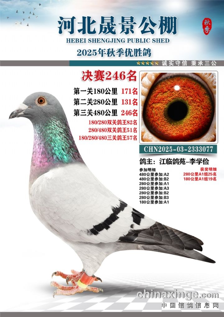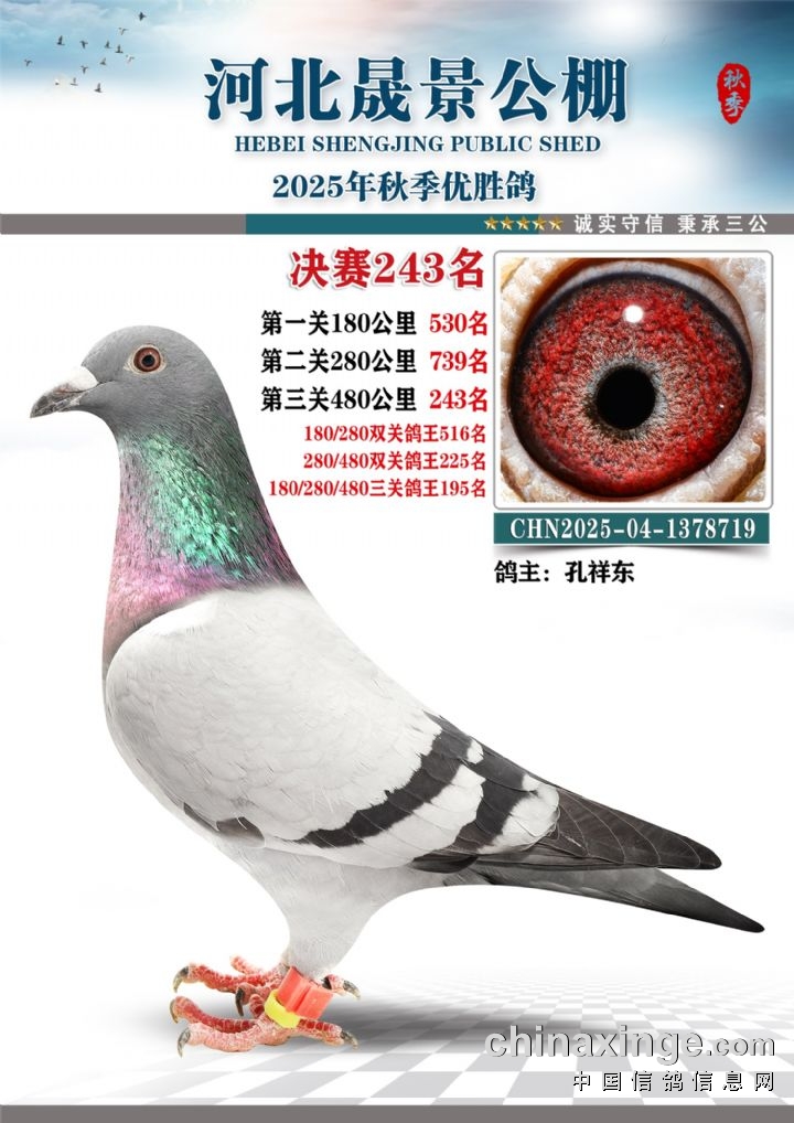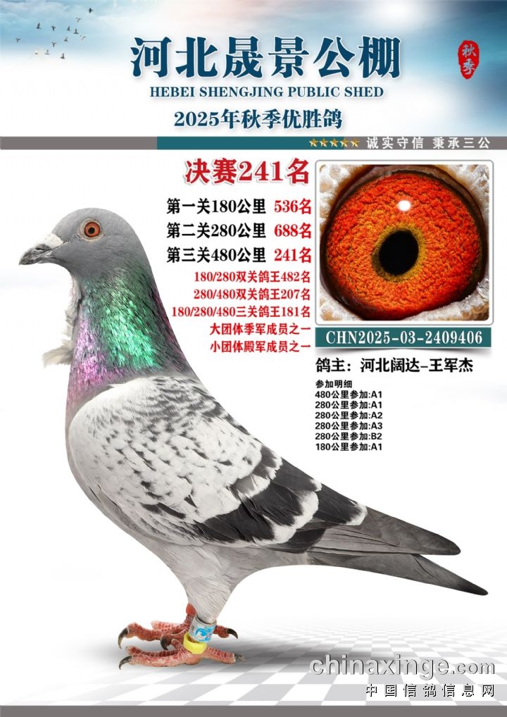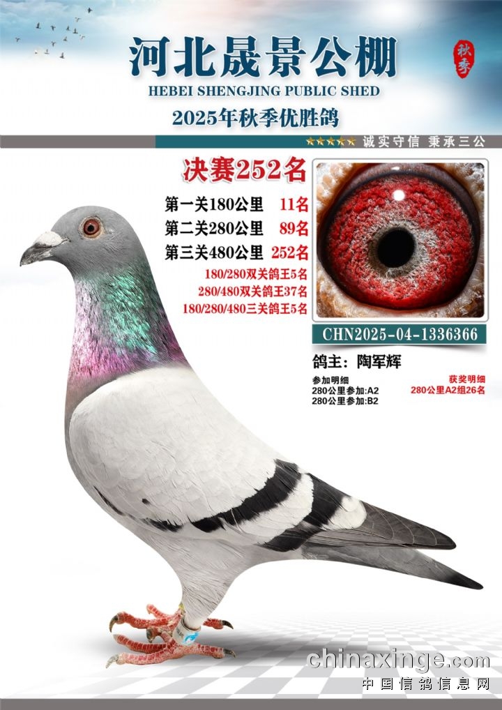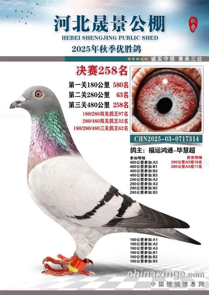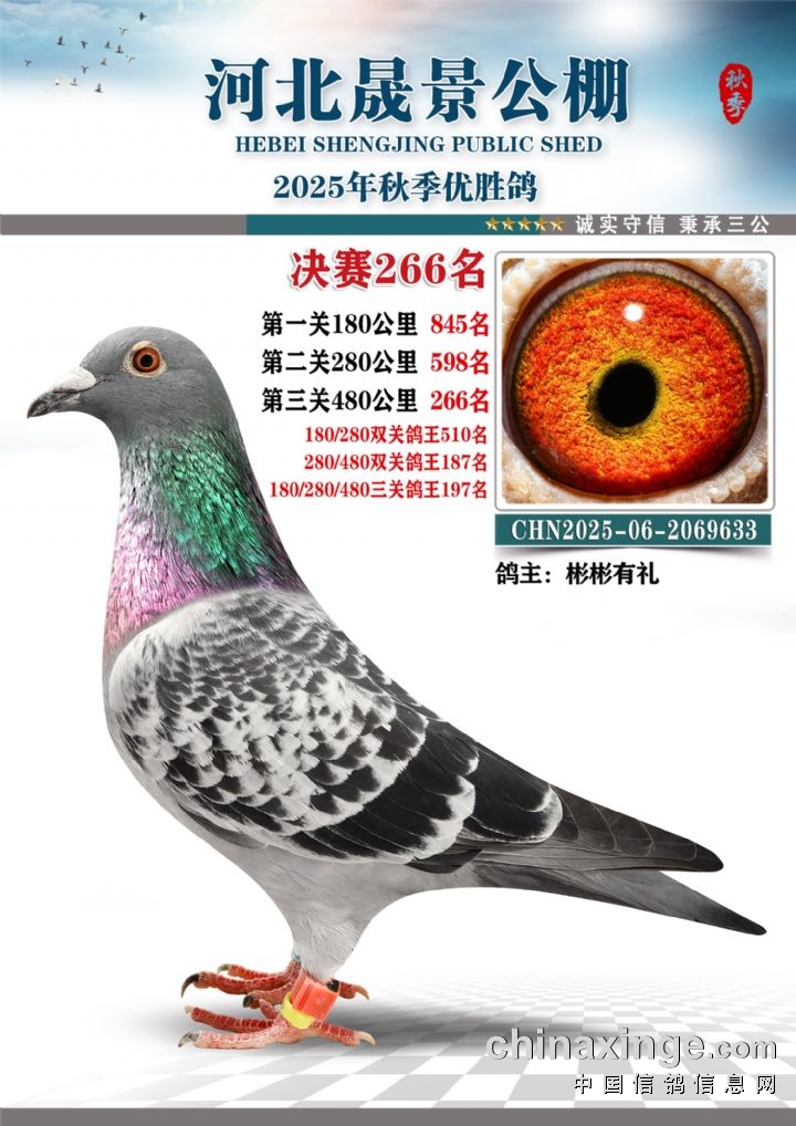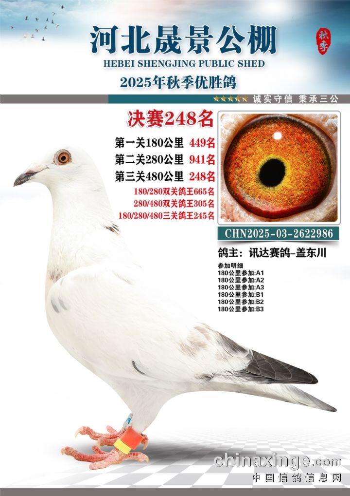 河北晟景公棚25年秋赛480公里决赛241-270名获奖鸽鉴赏图