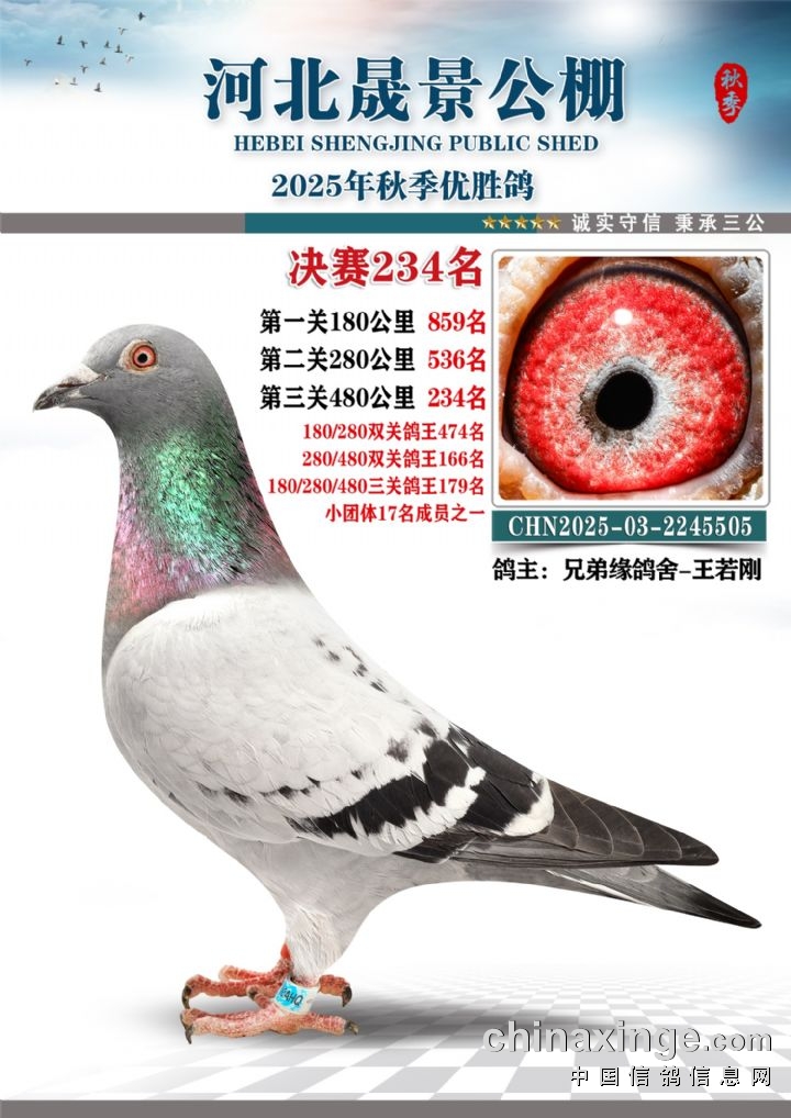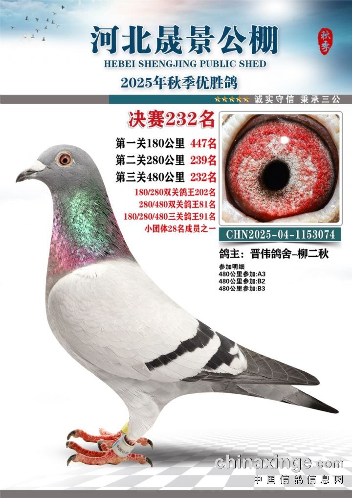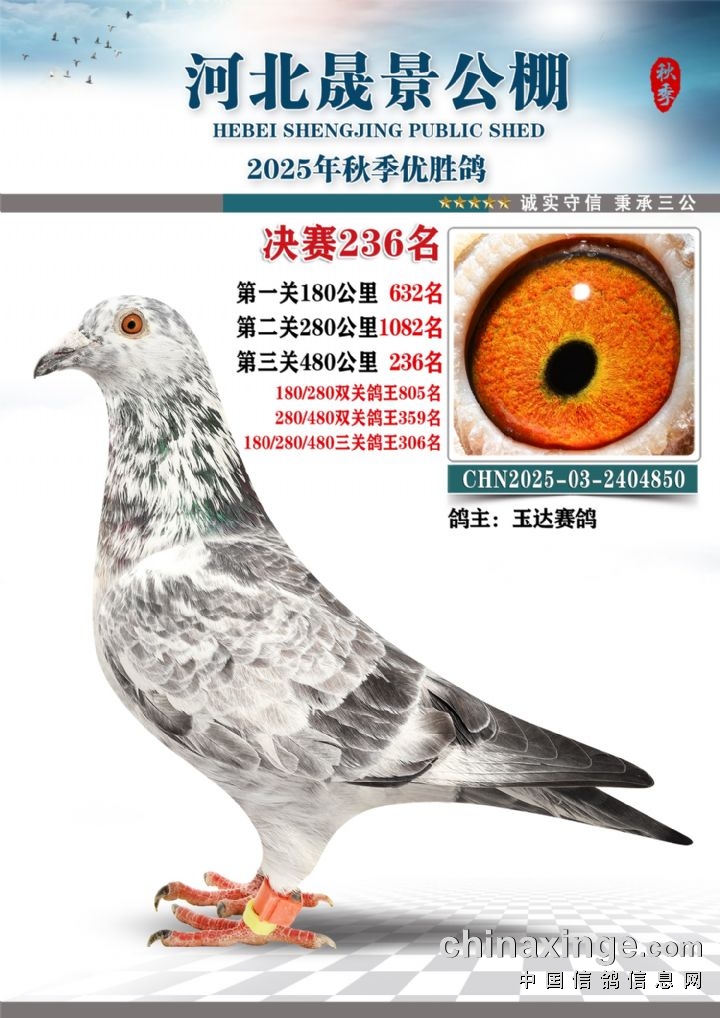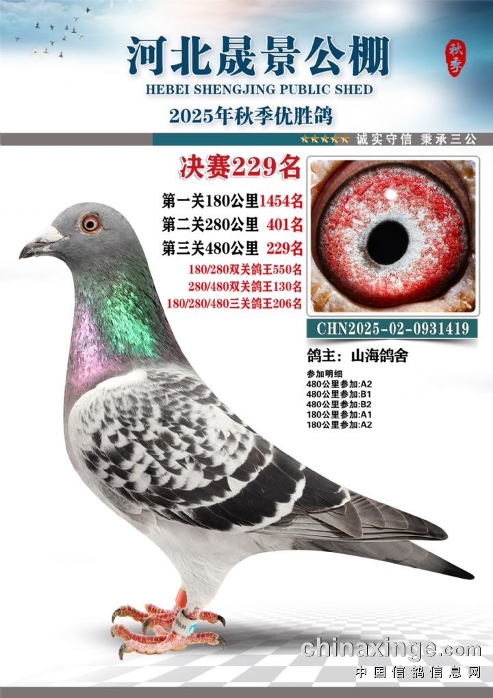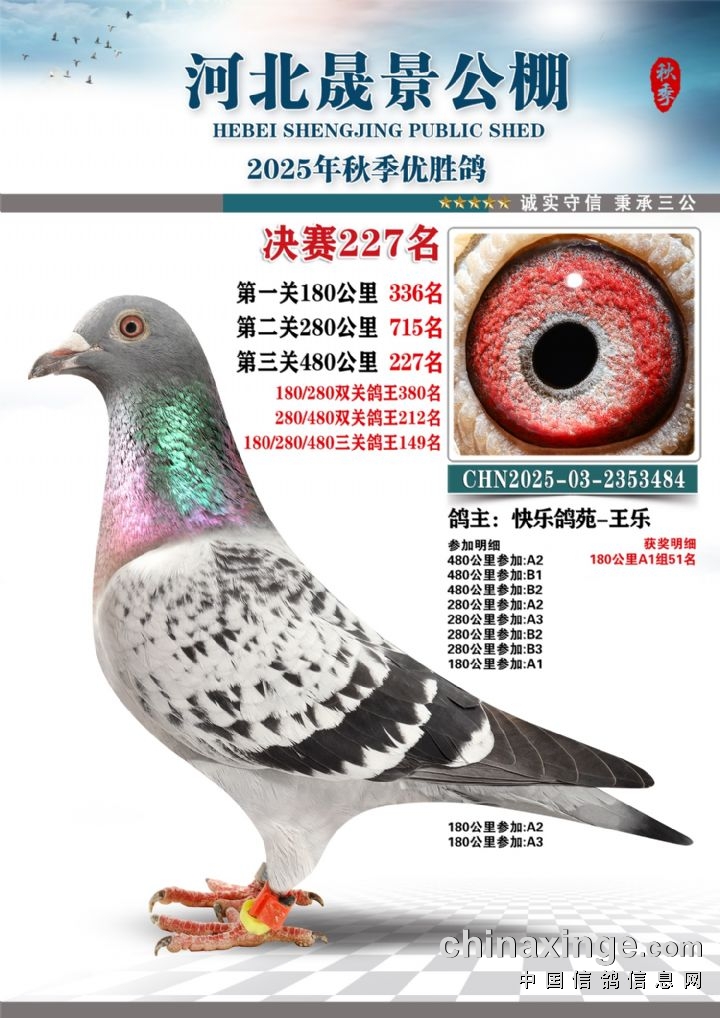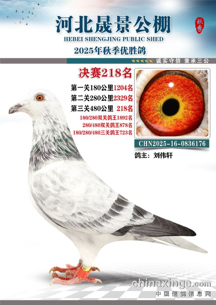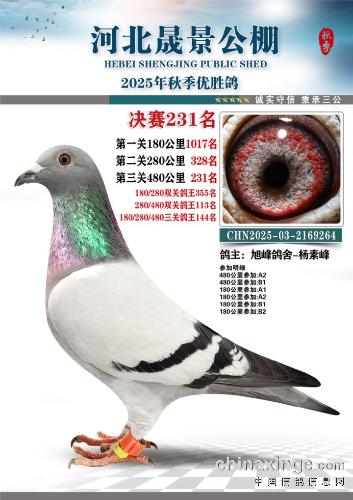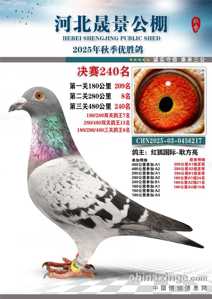 河北晟景公棚25年秋赛480公里决赛211-240名获奖鸽鉴赏图