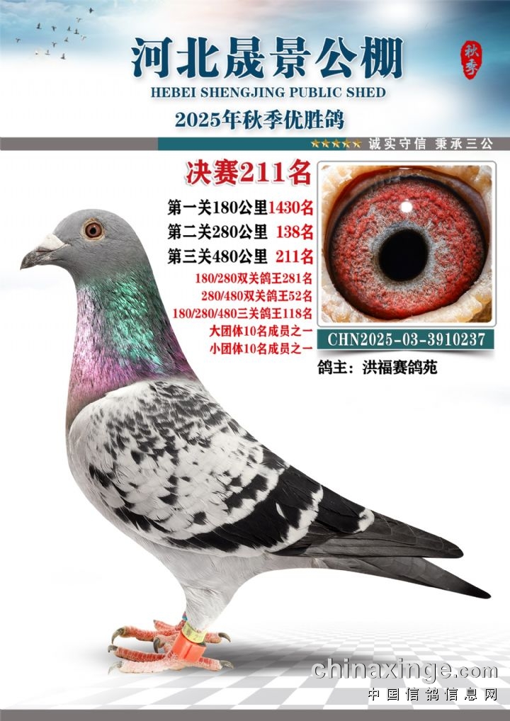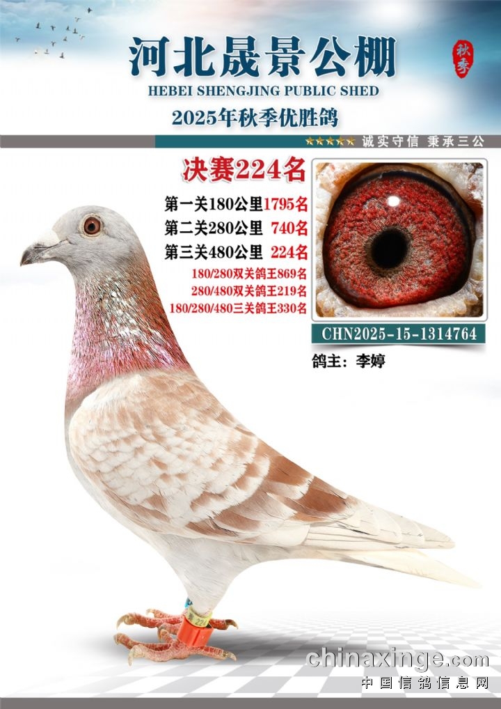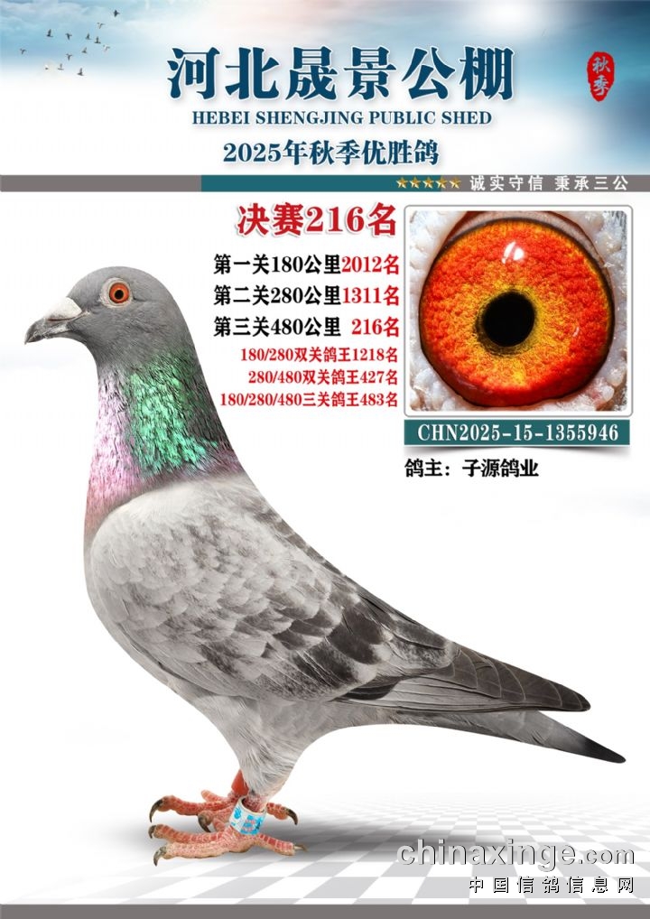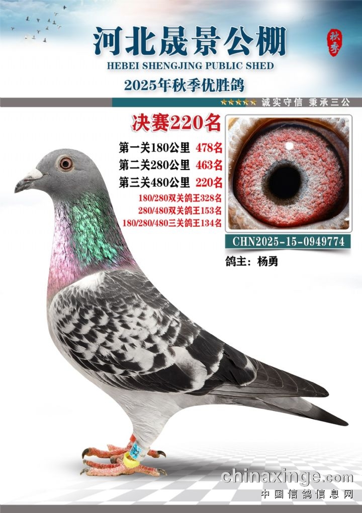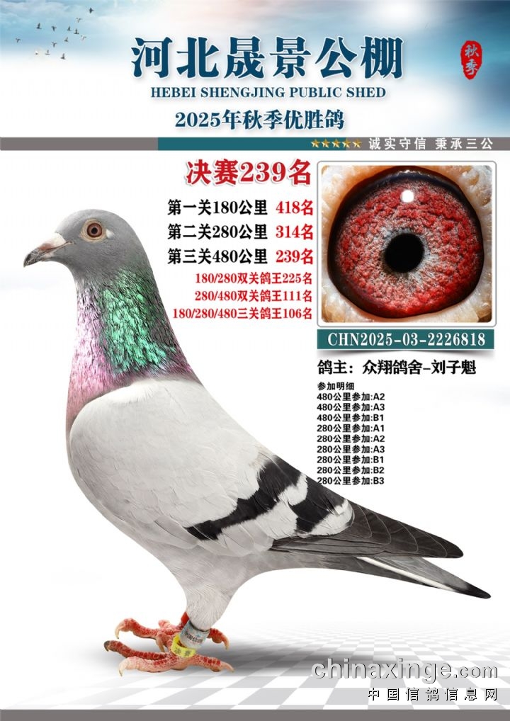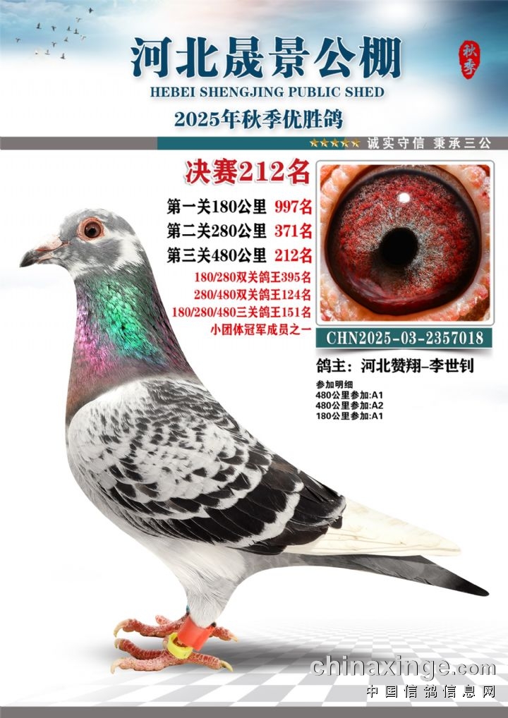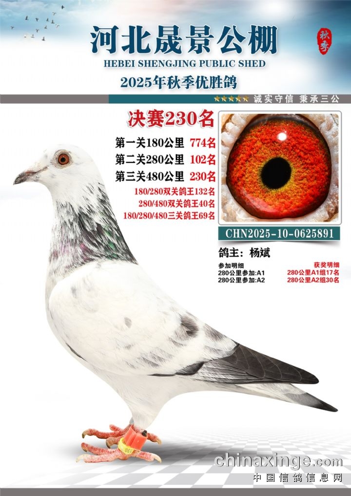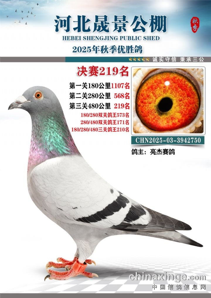 河北晟景公棚25年秋赛480公里决赛211-240名获奖鸽鉴赏图