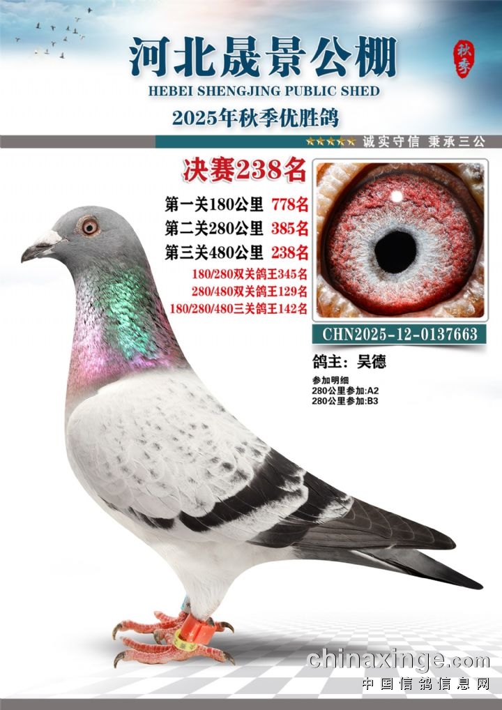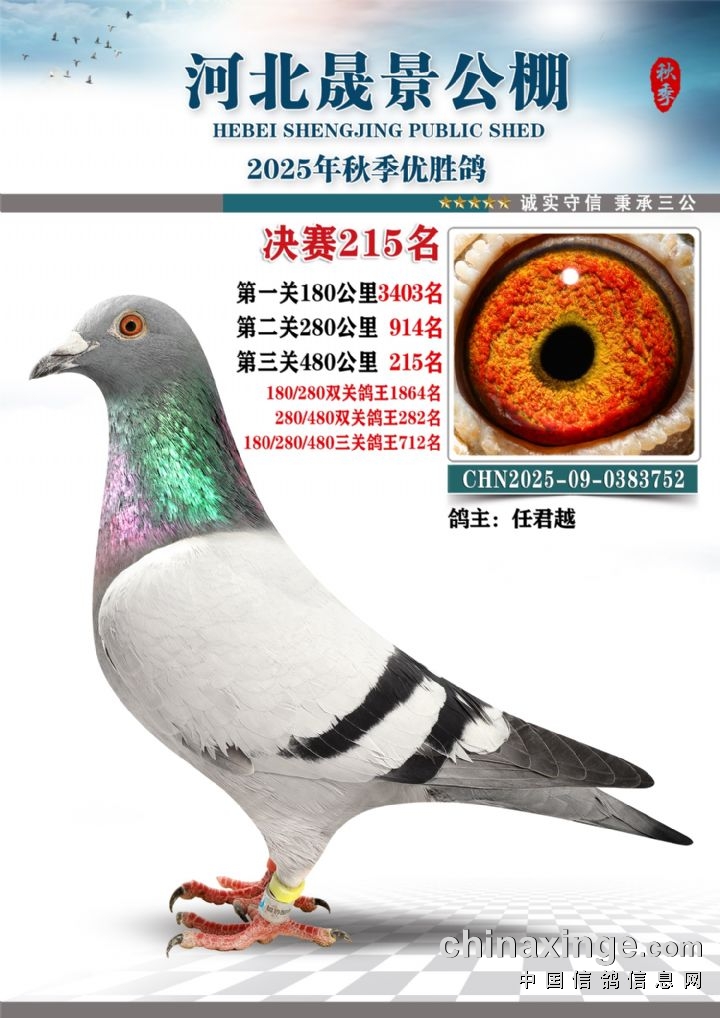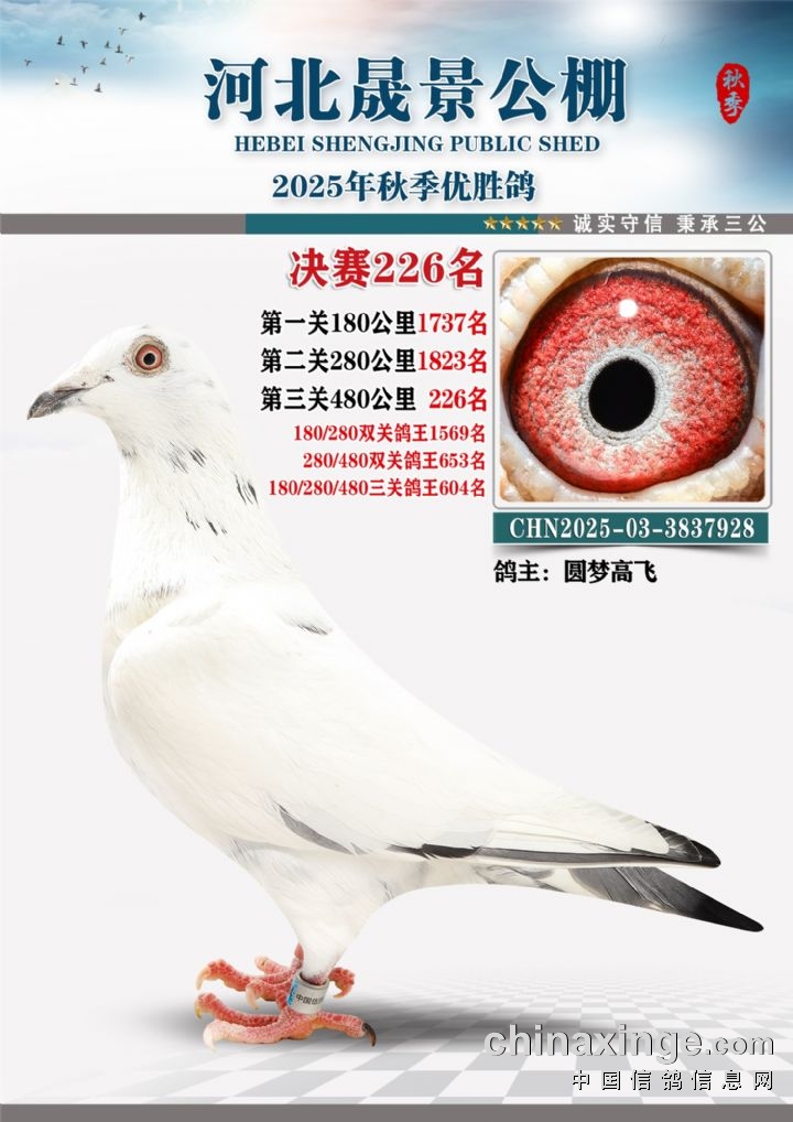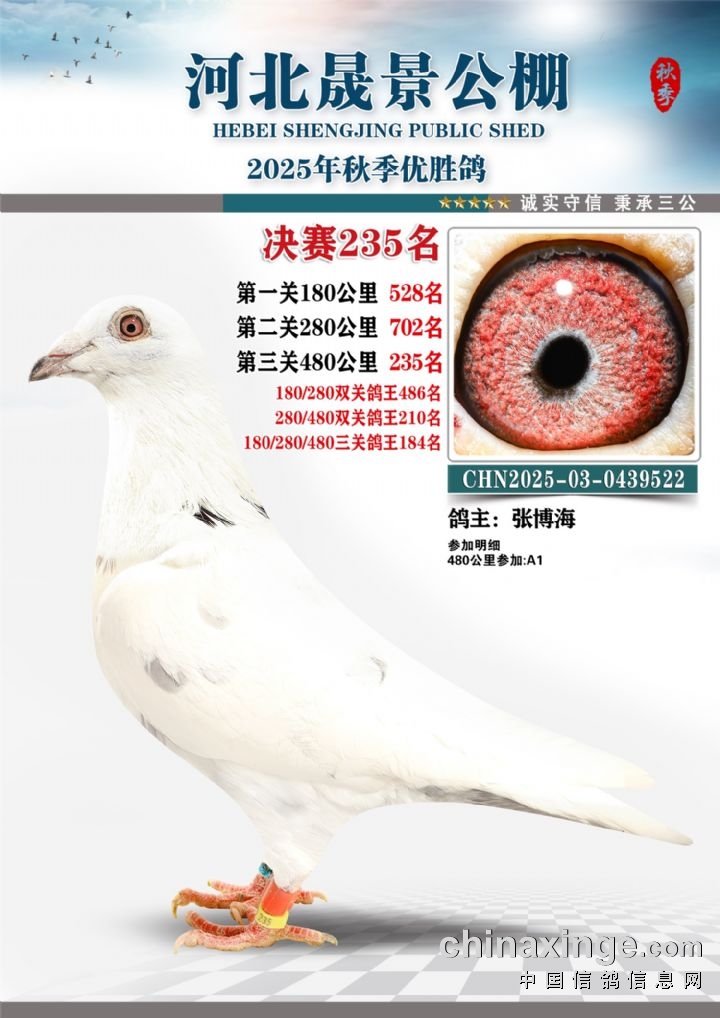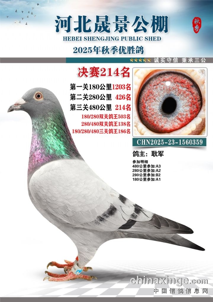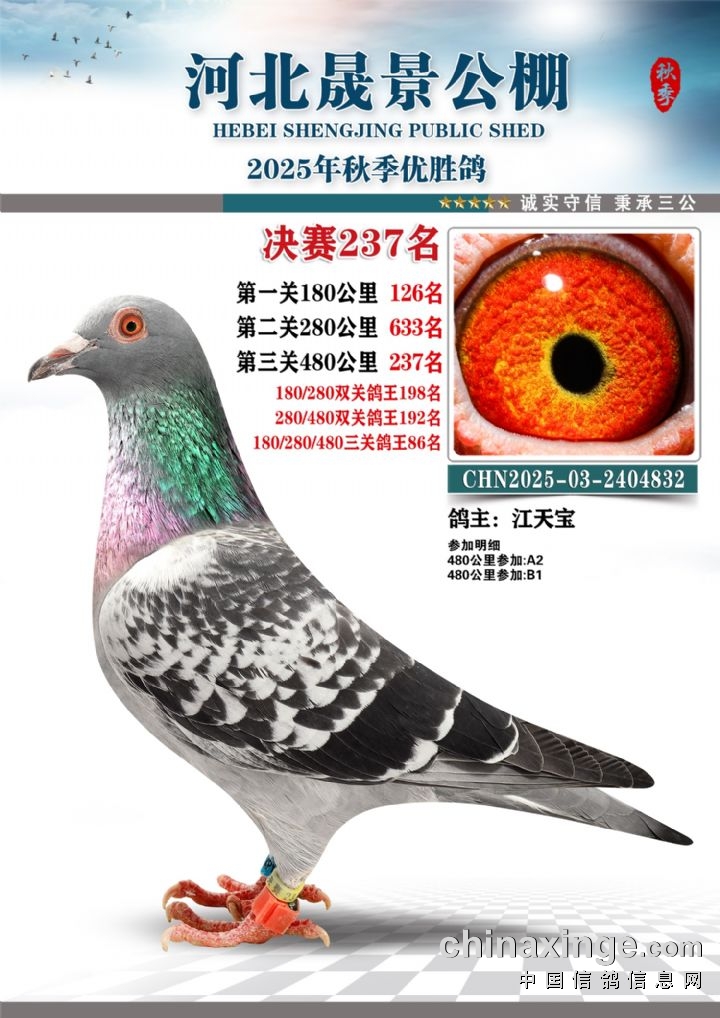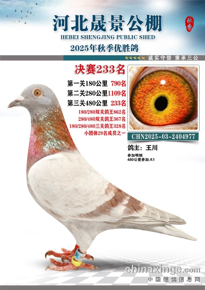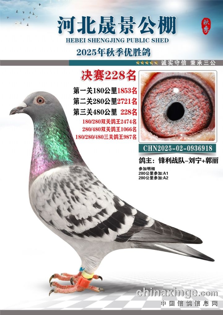 河北晟景公棚25年秋赛480公里决赛211-240名获奖鸽鉴赏图