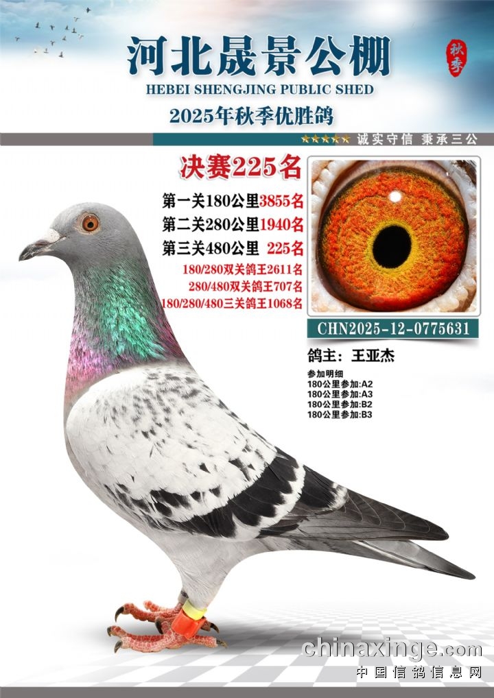 河北晟景公棚25年秋挑战赛600公里优胜鸽拍卖手册