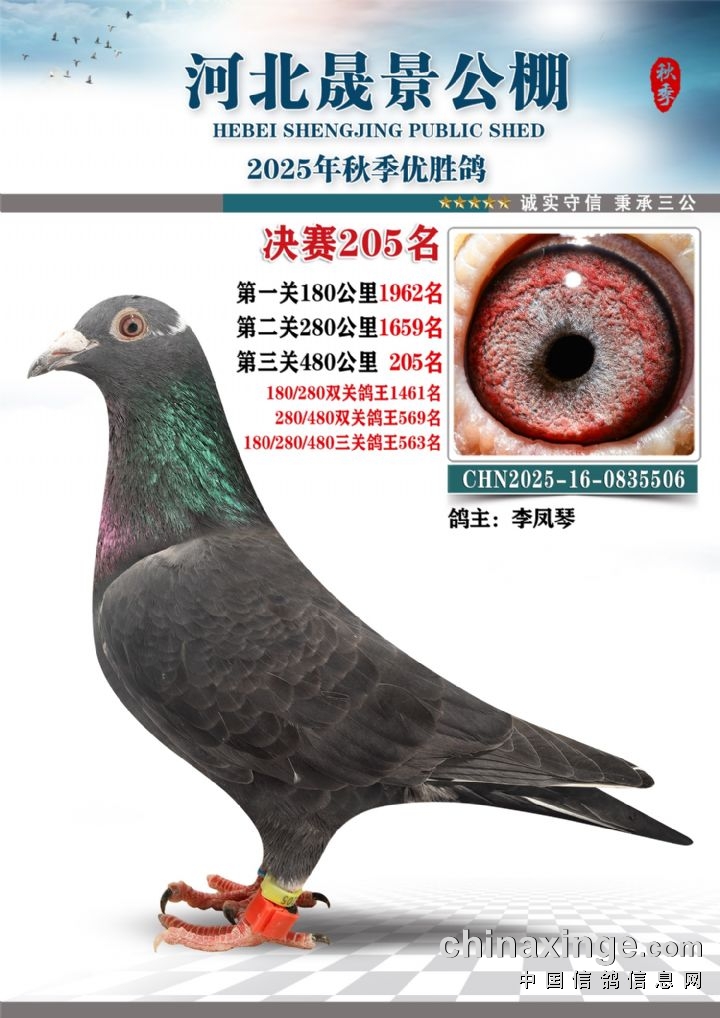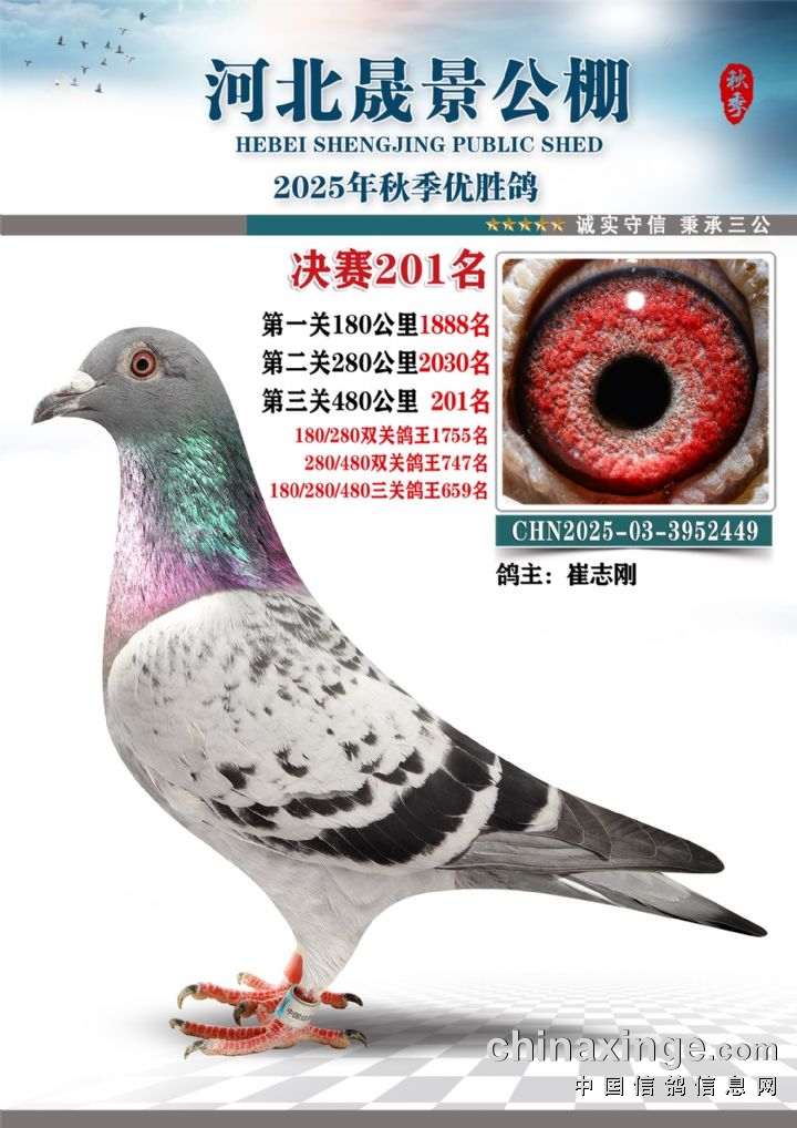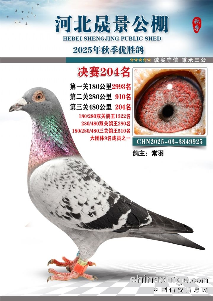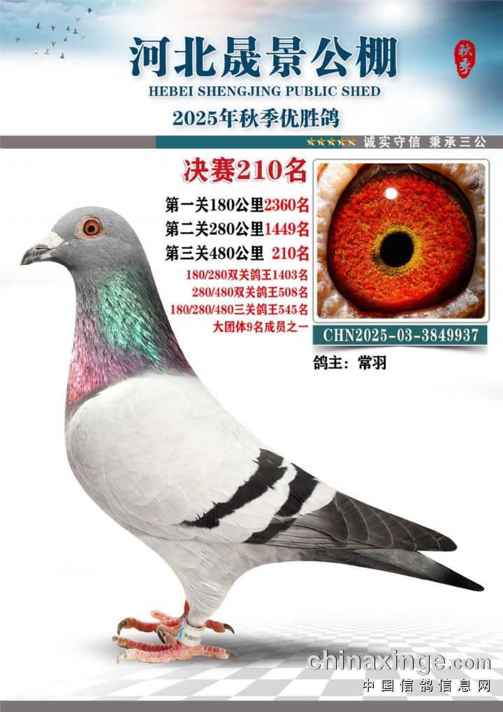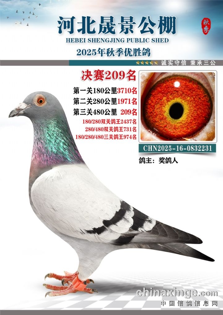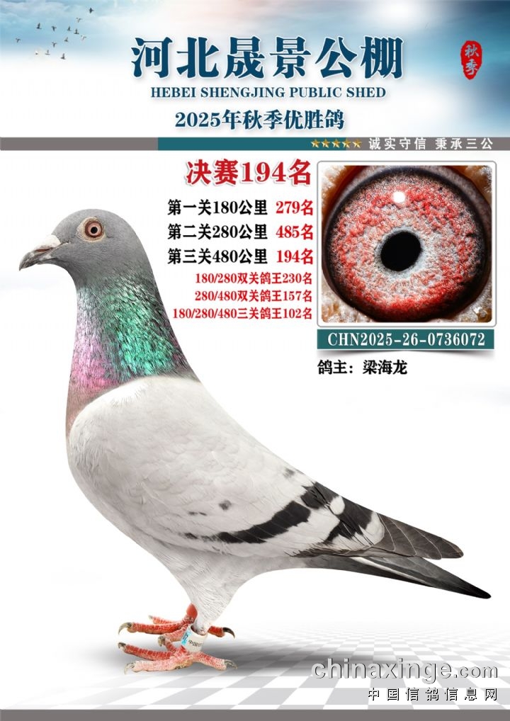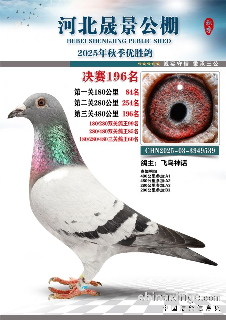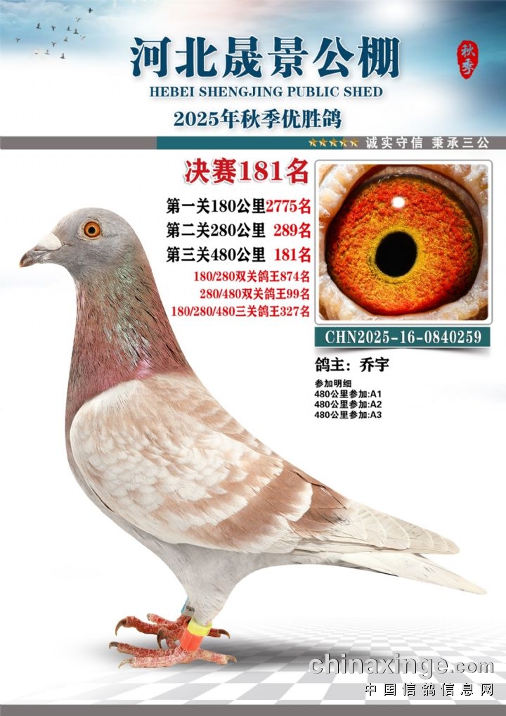 河北晟景公棚25年秋赛480公里决赛181-210名获奖鸽鉴赏图