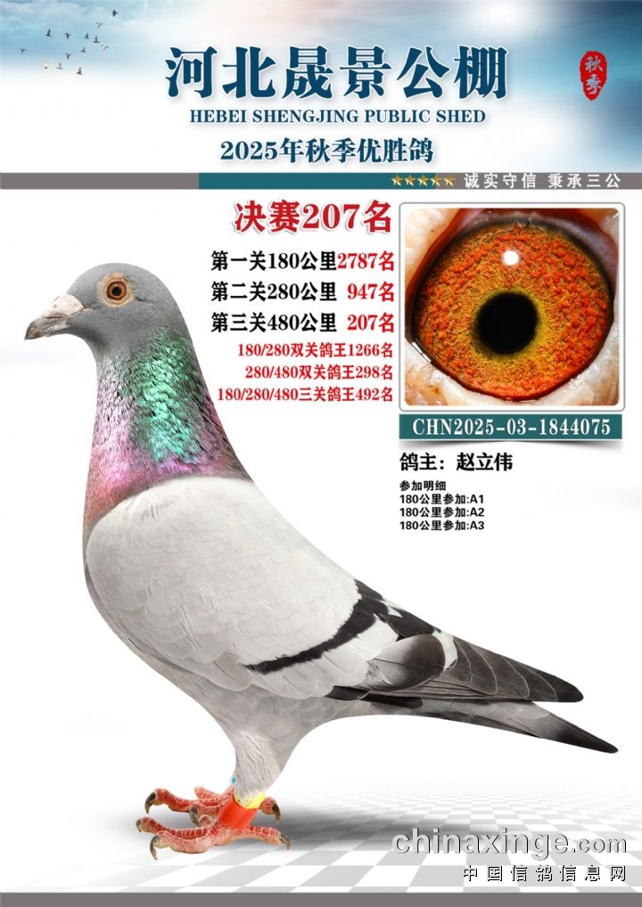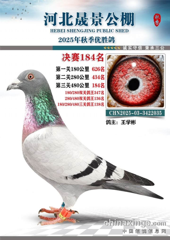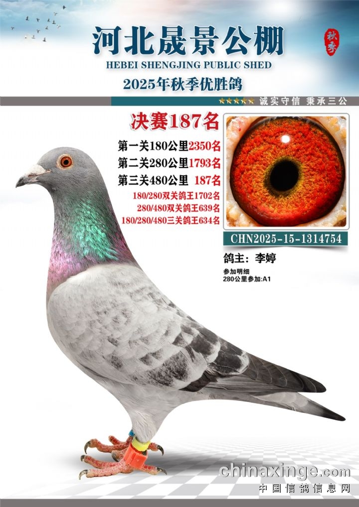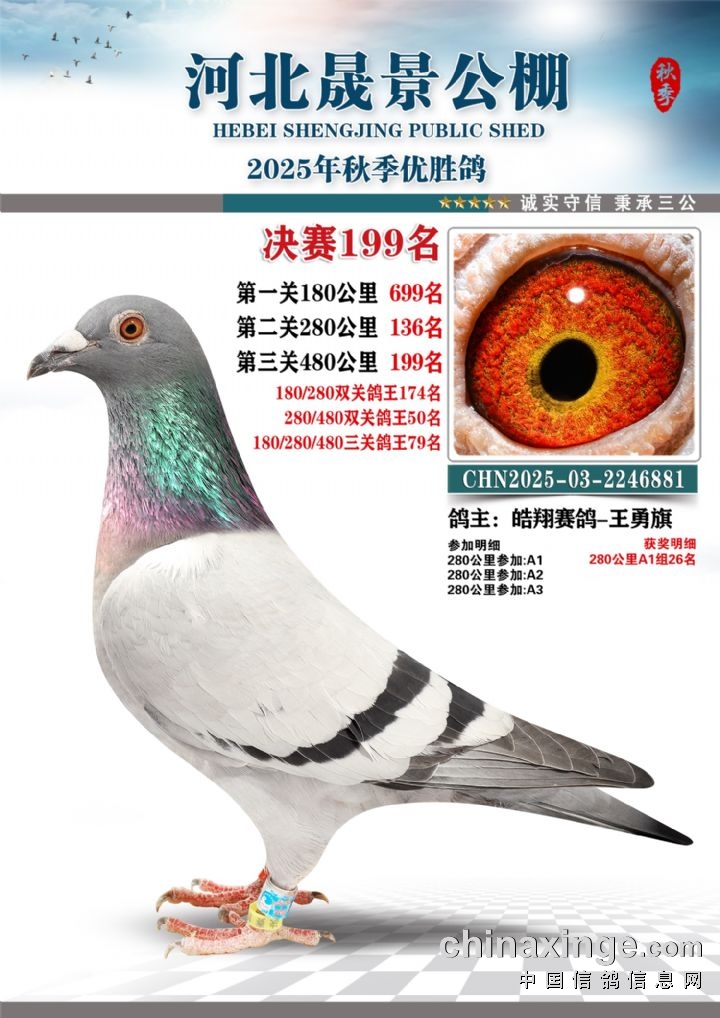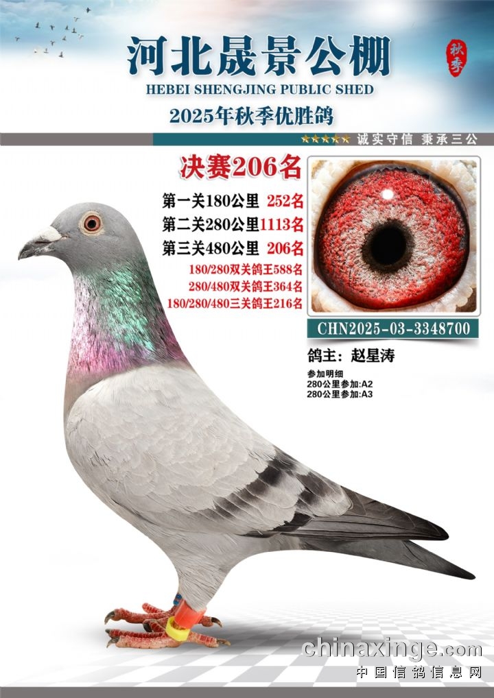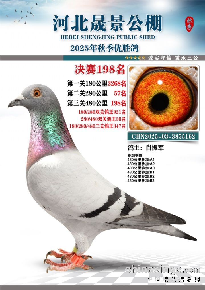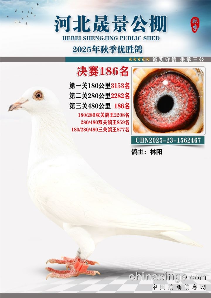 河北晟景公棚25年秋赛480公里决赛181-210名获奖鸽鉴赏图