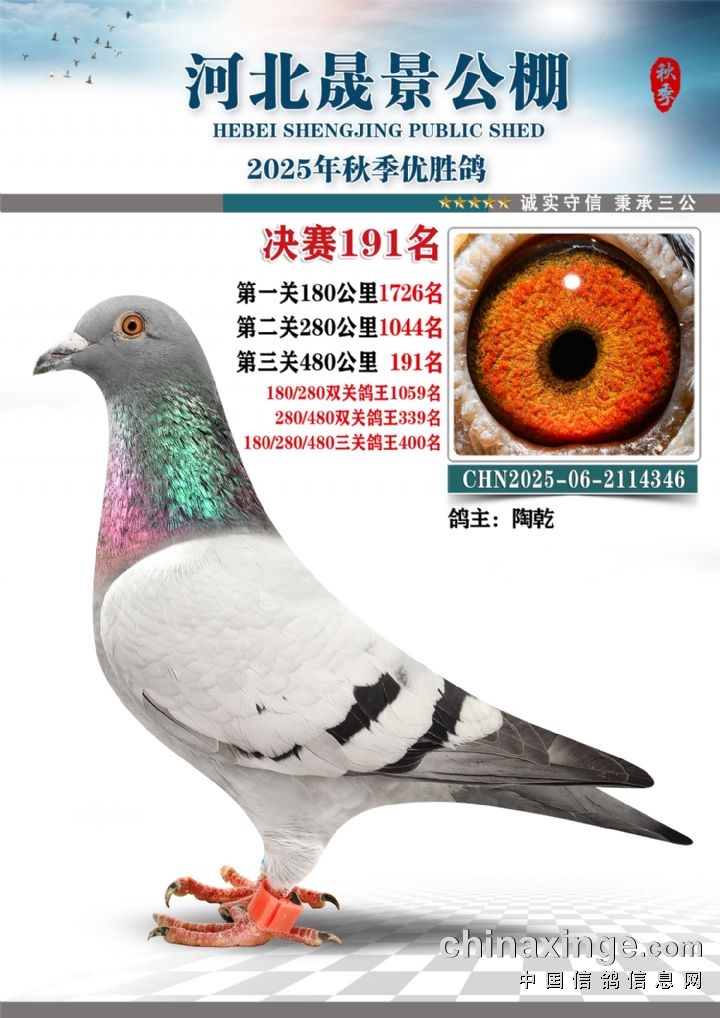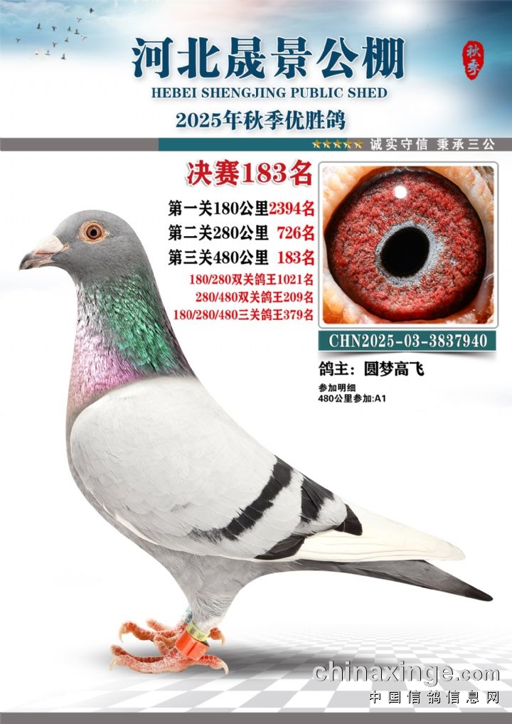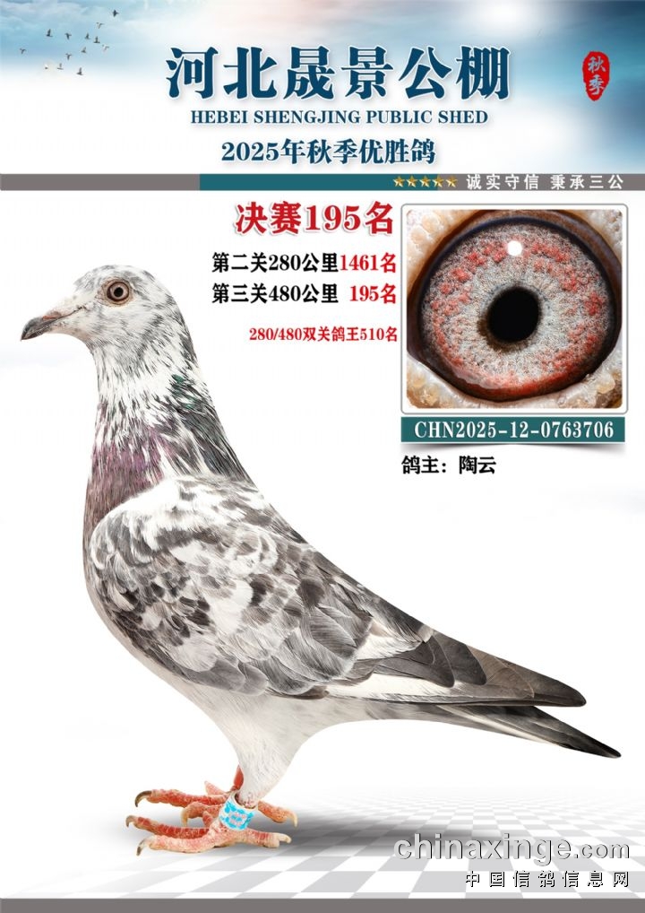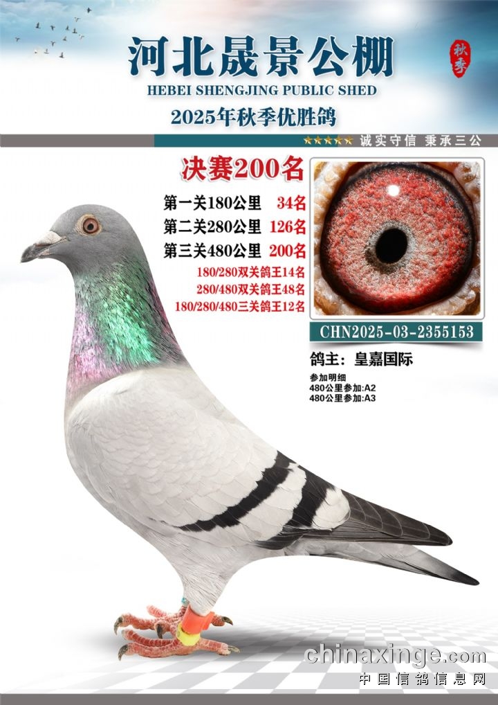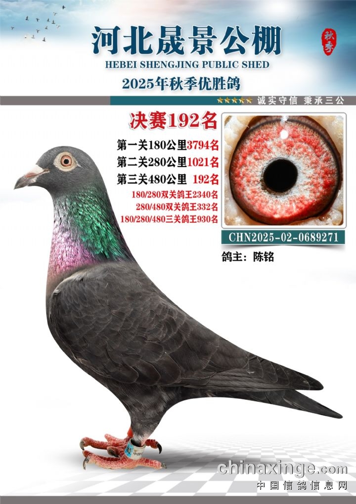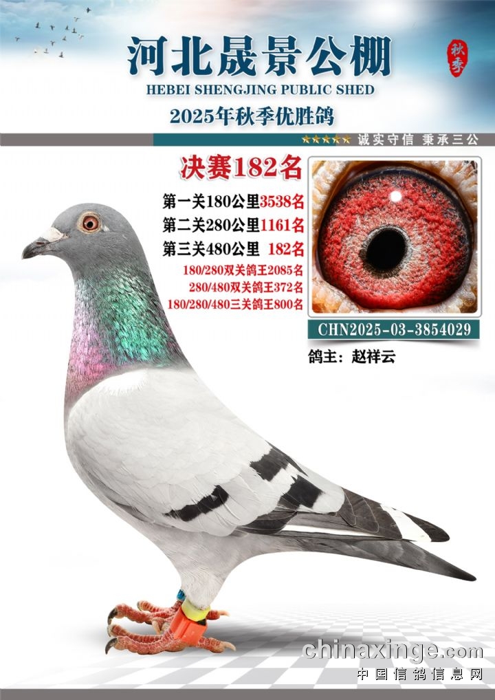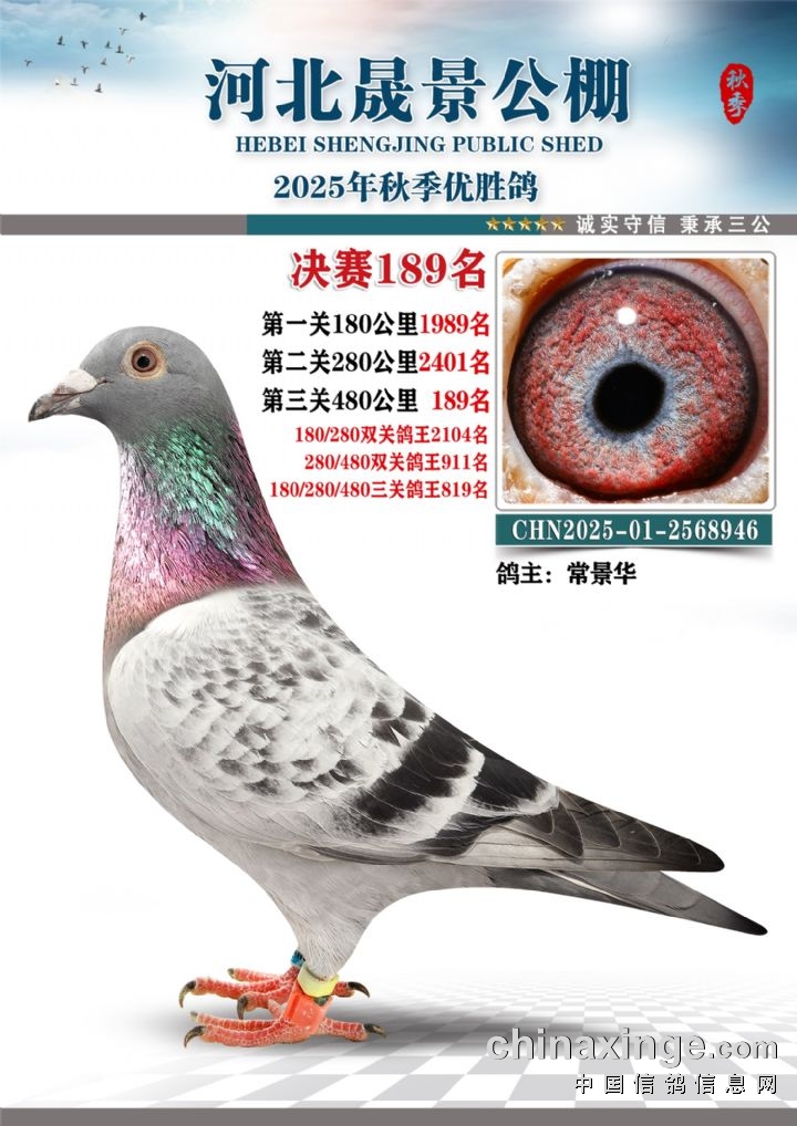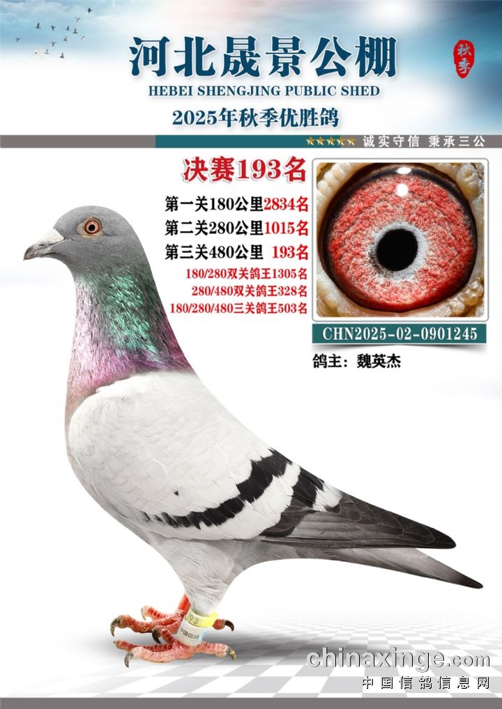 河北晟景公棚25年秋赛480公里决赛181-210名获奖鸽鉴赏图