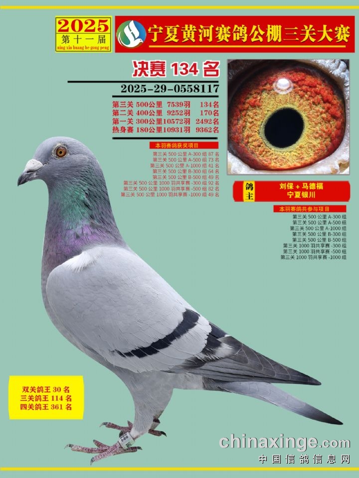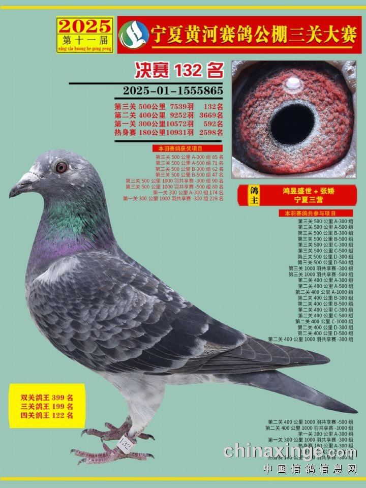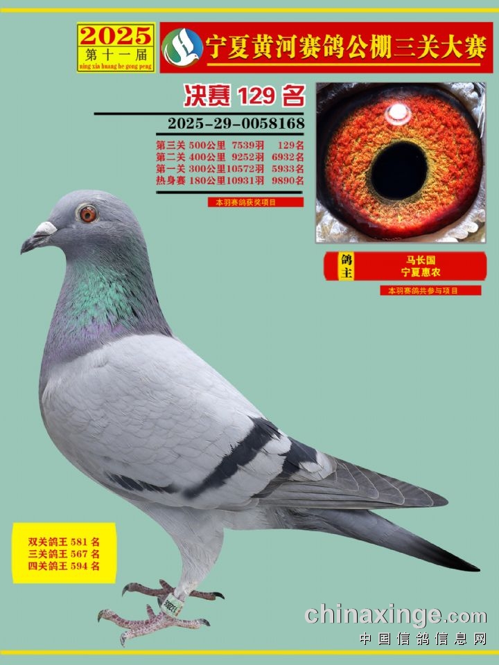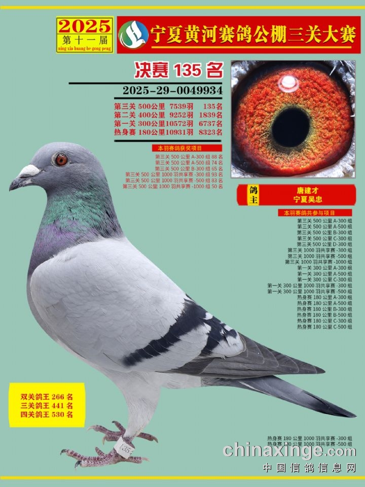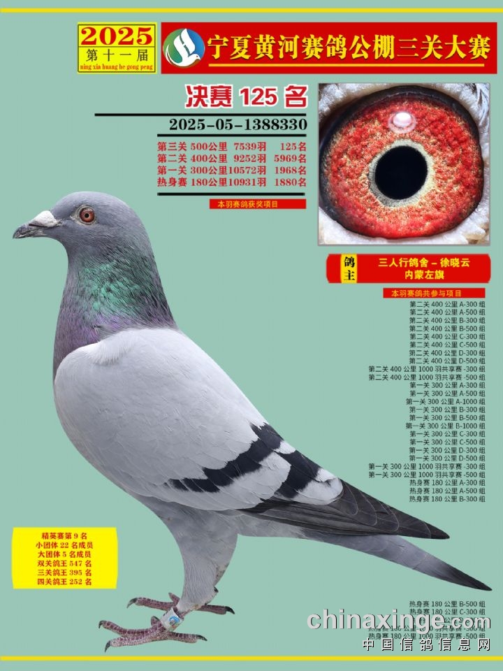 宁夏黄河赛鸽公棚第三关决赛500公里121-135名赏析