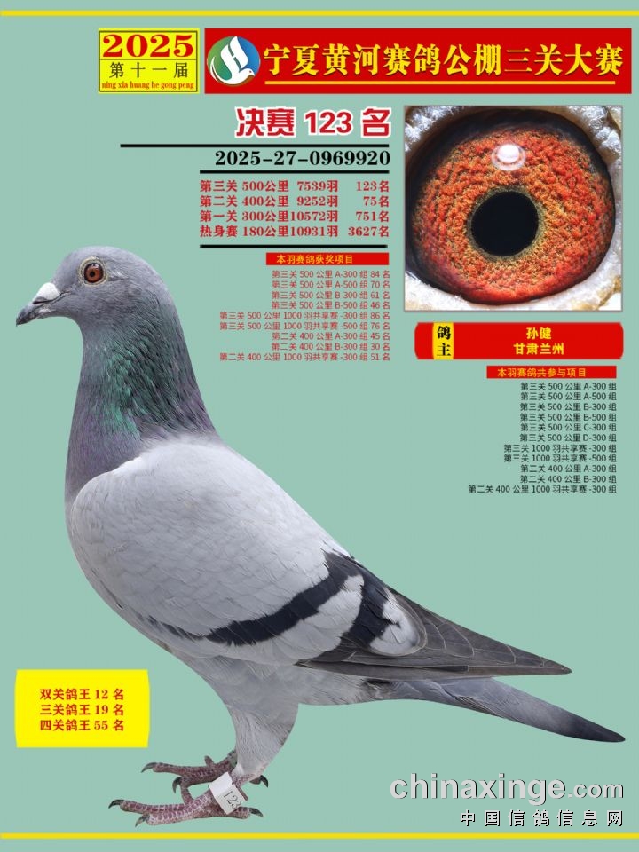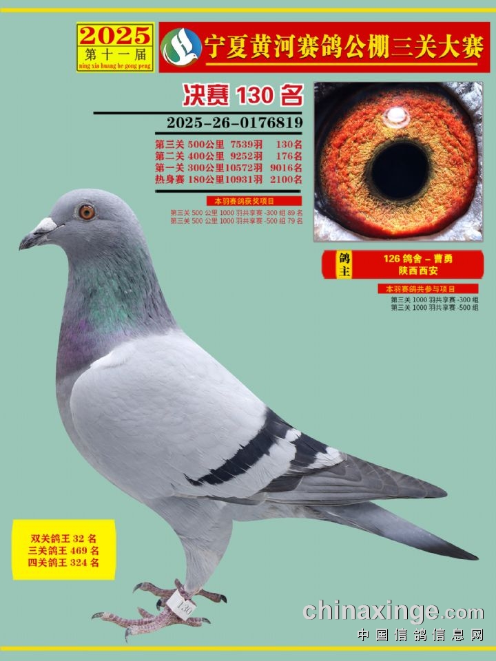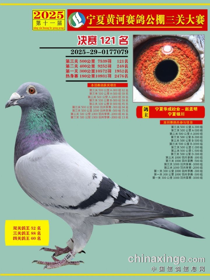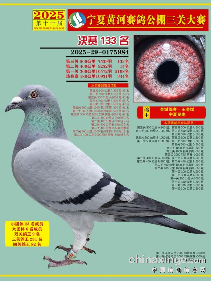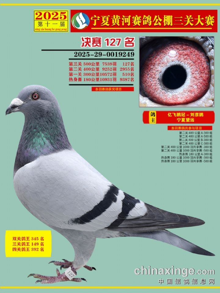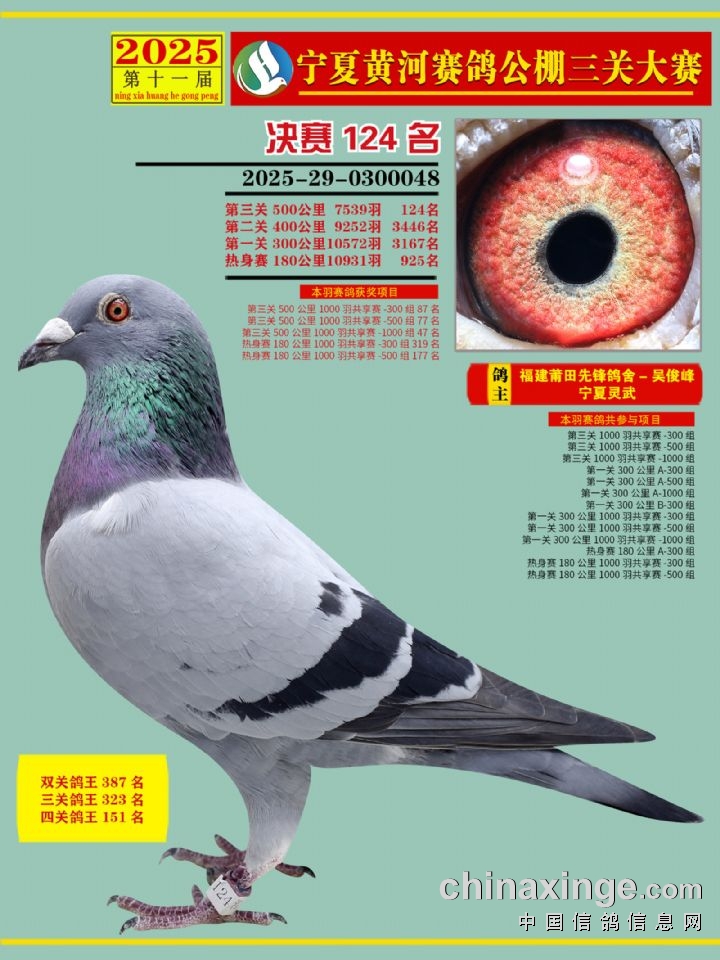 宁夏黄河赛鸽公棚第三关决赛500公里121-135名赏析