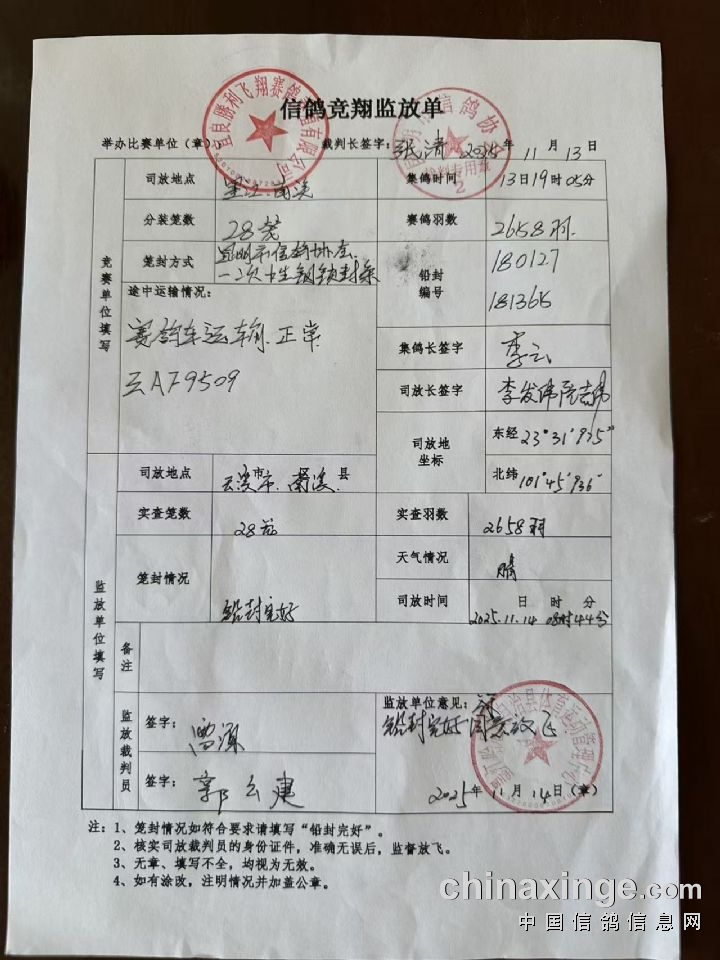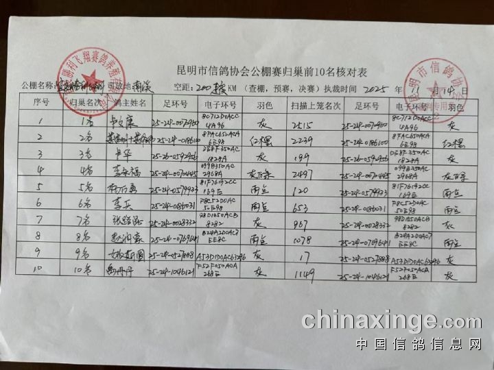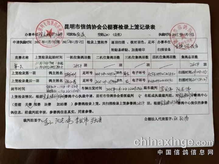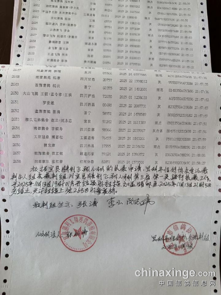 勝利飞翔公棚 200公里逐羽扫描上笼重新匹配电子环清单