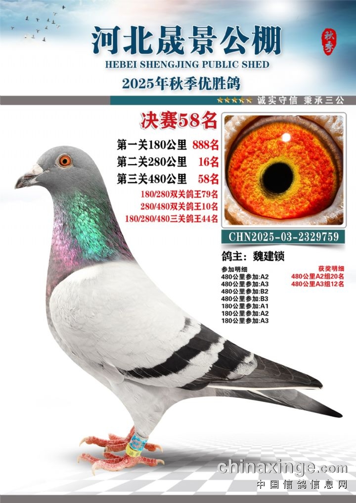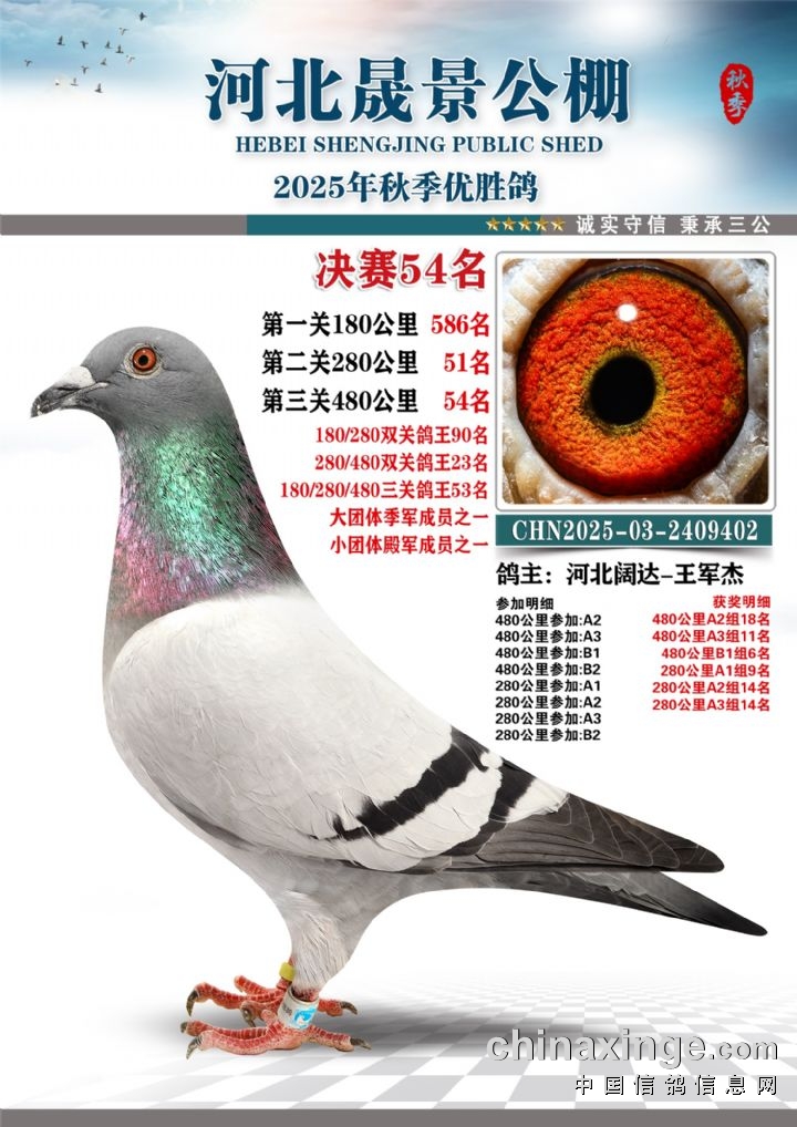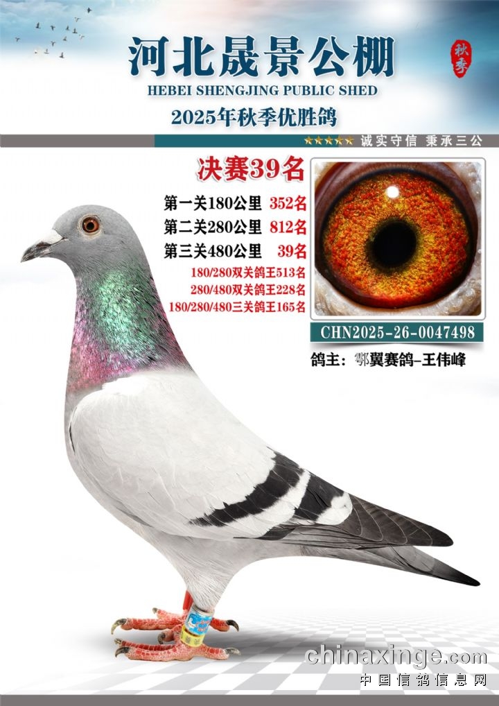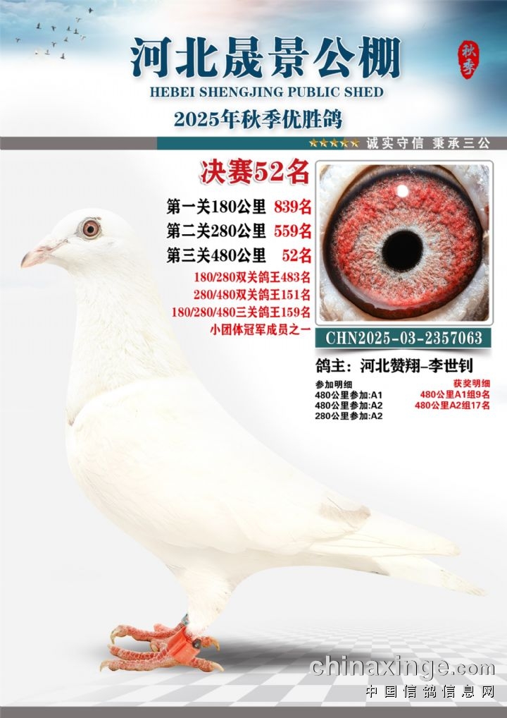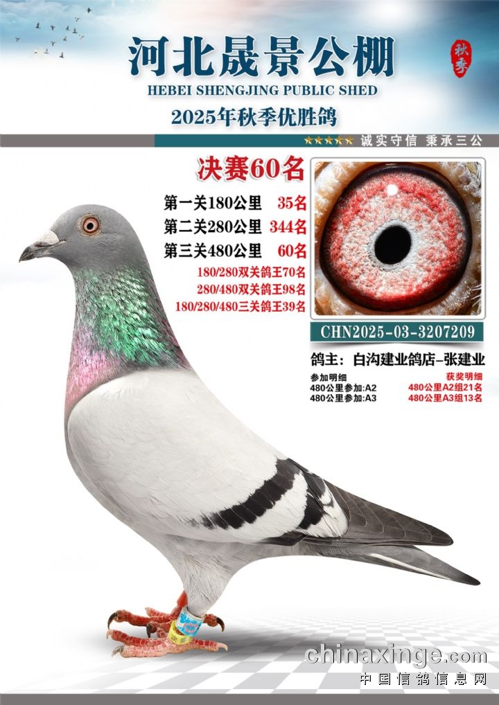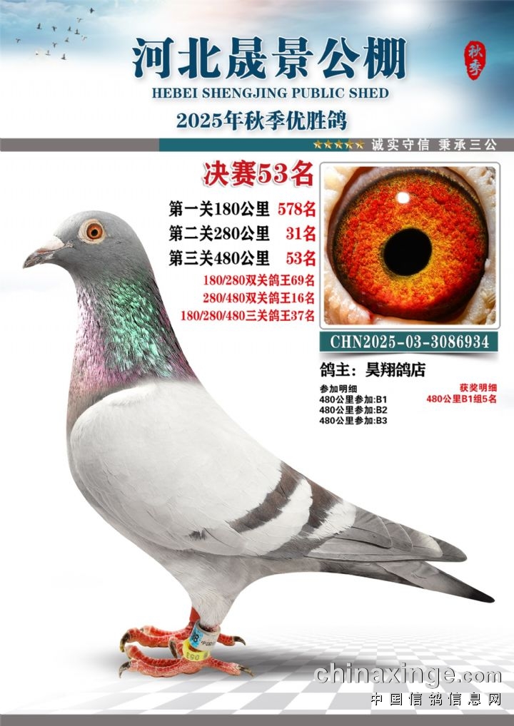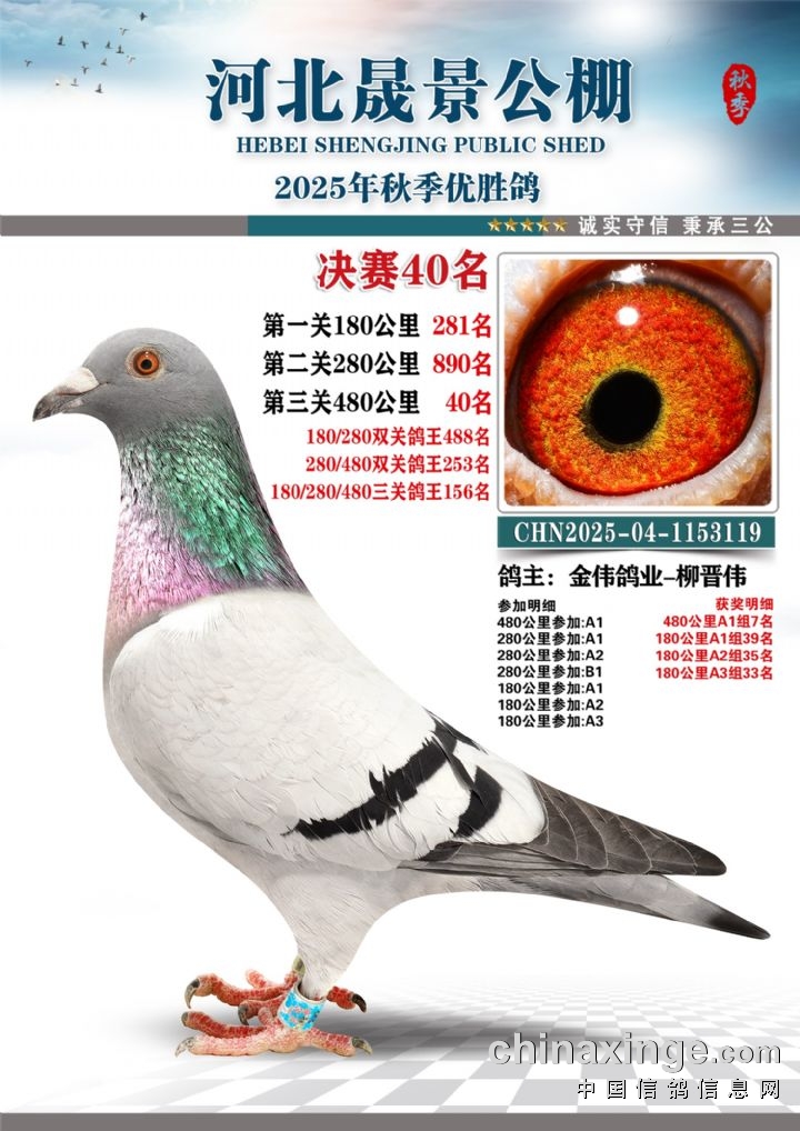 河北晟景公棚25年秋赛480公里决赛31-60名获奖鸽鉴赏图