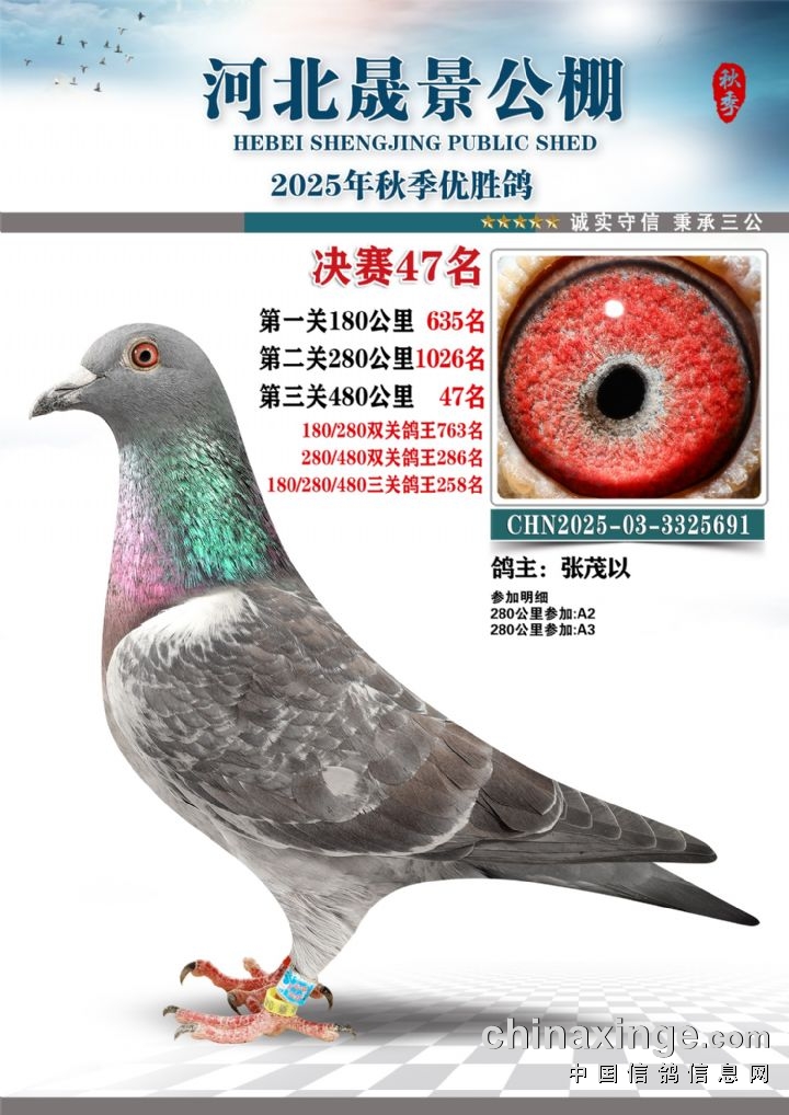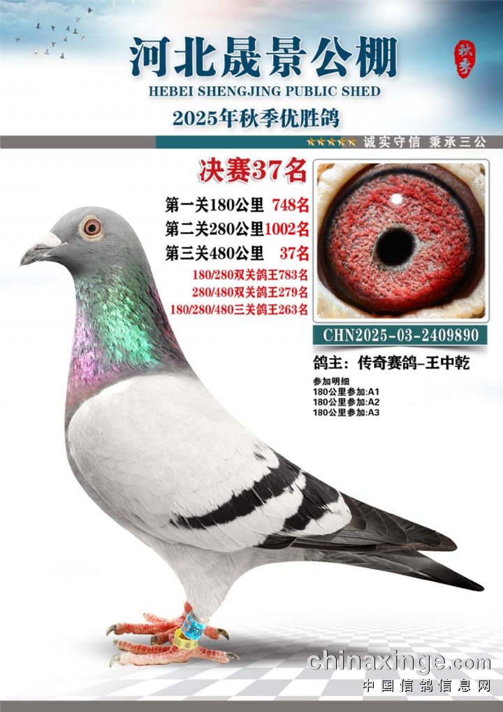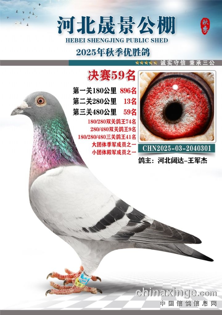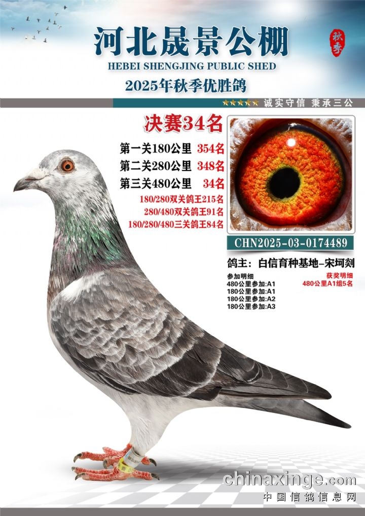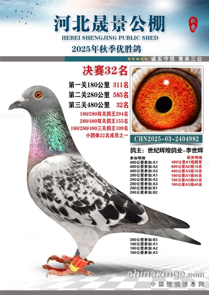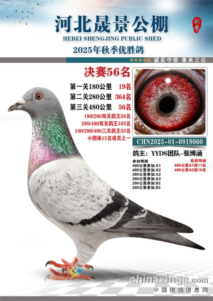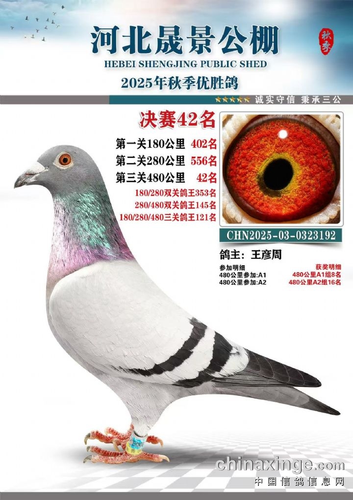 河北晟景公棚25年秋赛480公里决赛31-60名获奖鸽鉴赏图
