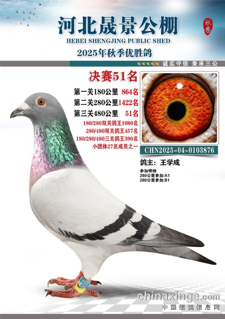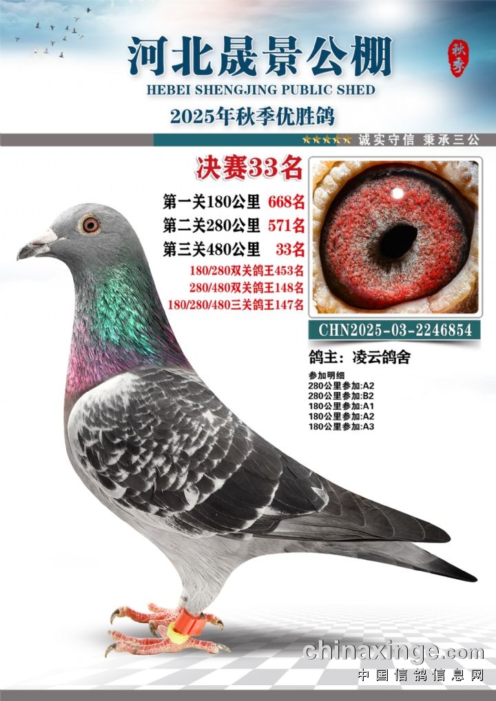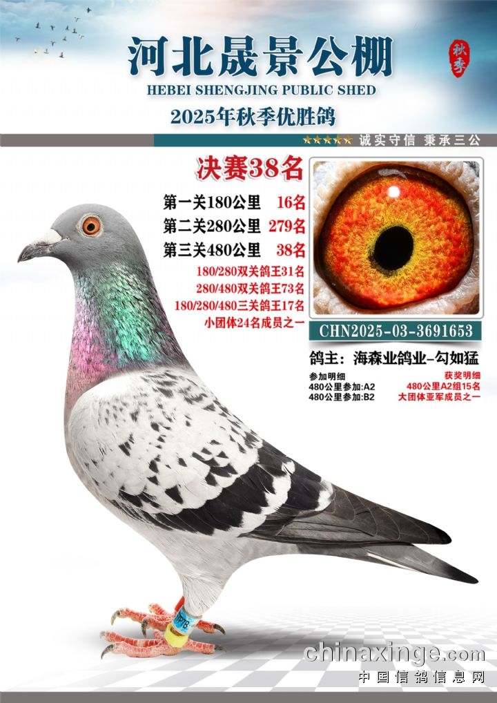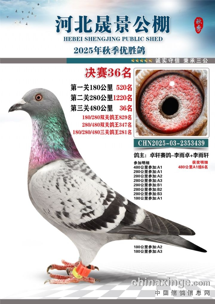 河北晟景公棚25年秋挑战赛600公里优胜鸽拍卖手册