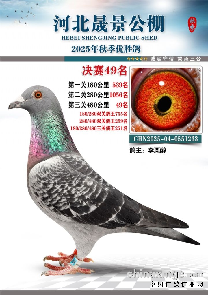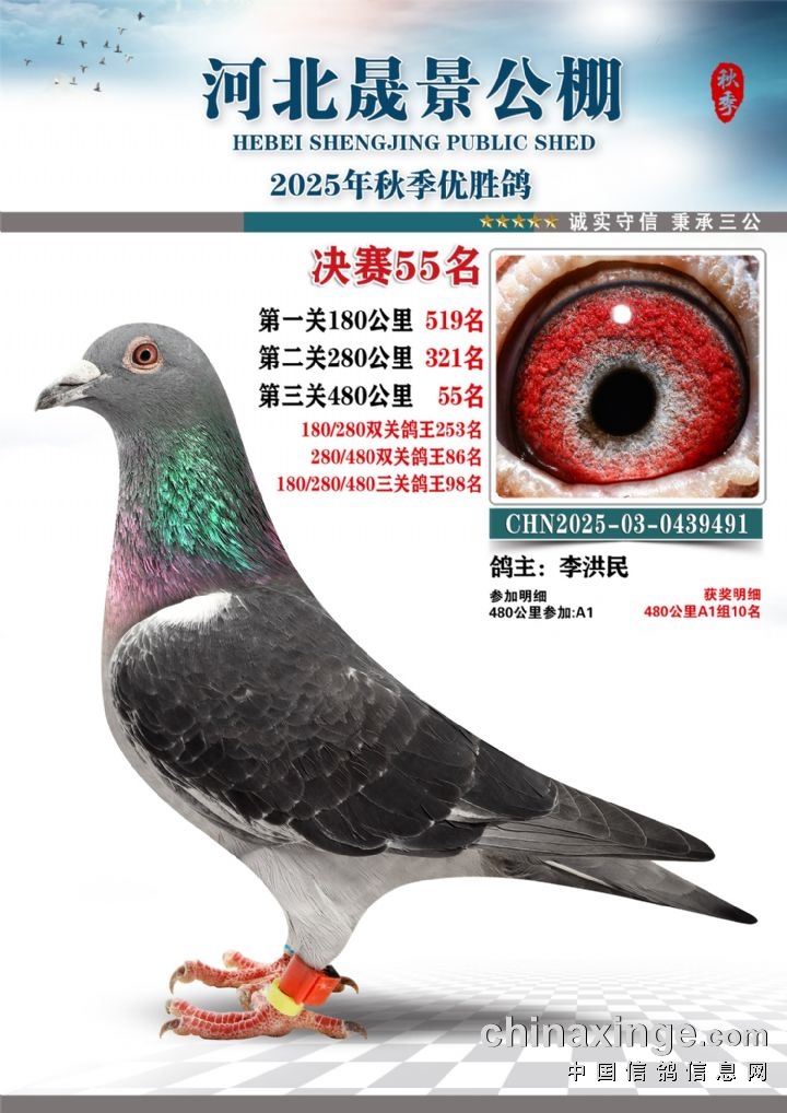 河北晟景公棚550公里加站赛获奖鸽图片鉴赏冠军-10名