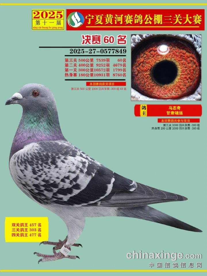 宁夏黄河赛鸽公棚第三关决赛500公里46-60名赏析