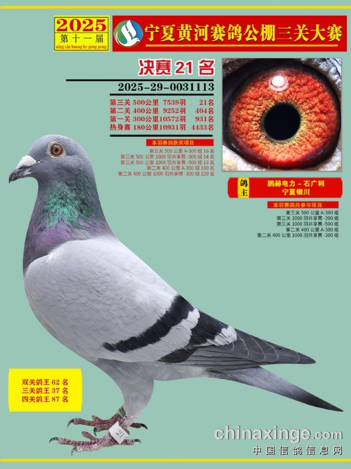 宁夏黄河赛鸽公棚第三关决赛500公里16-30名赏析