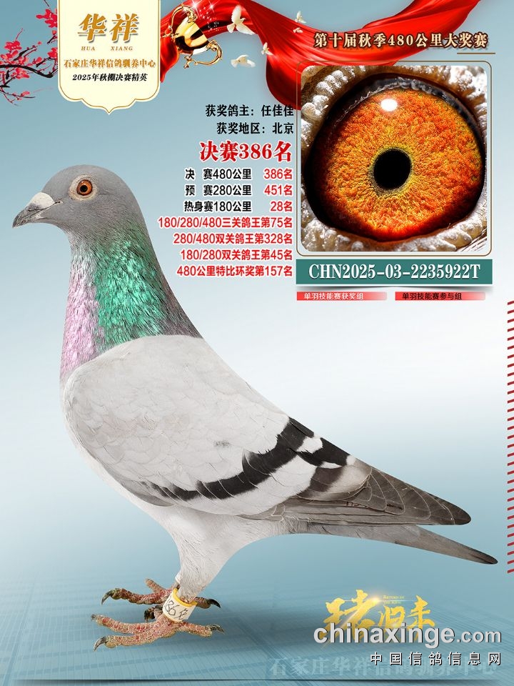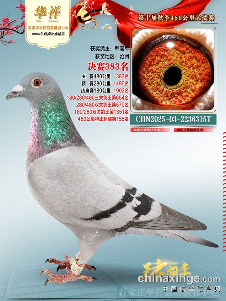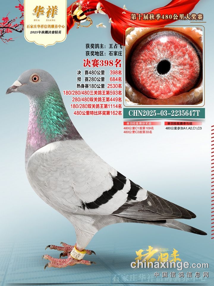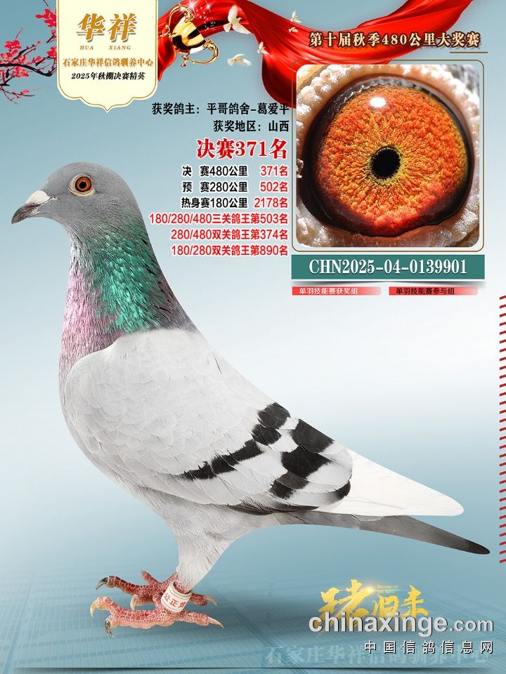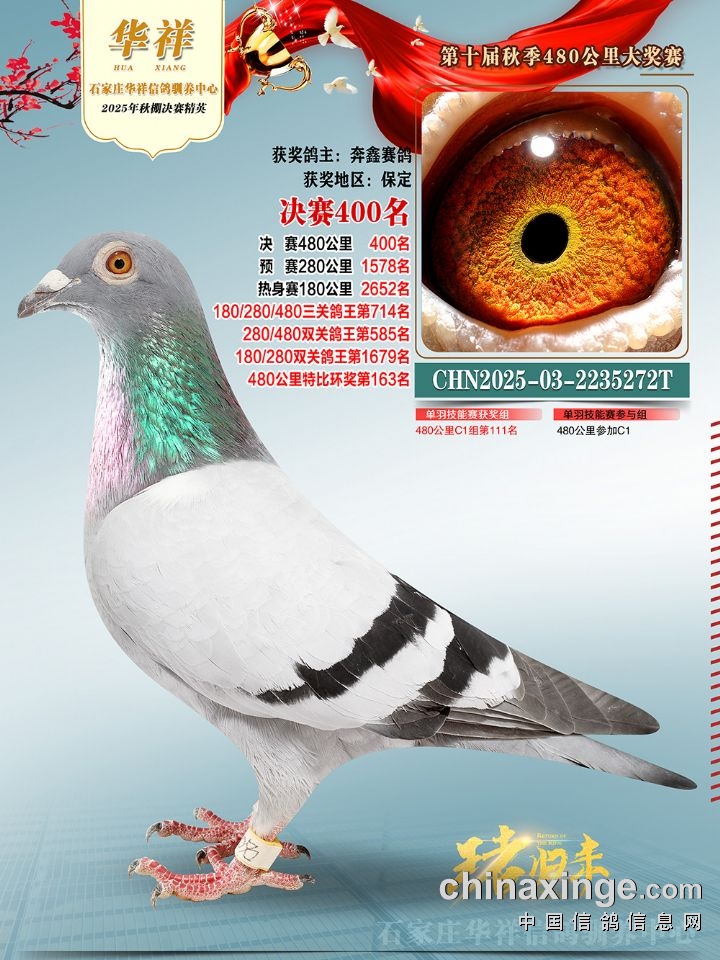 华祥公棚480公里决赛371名-400名获奖鸽图片赏析